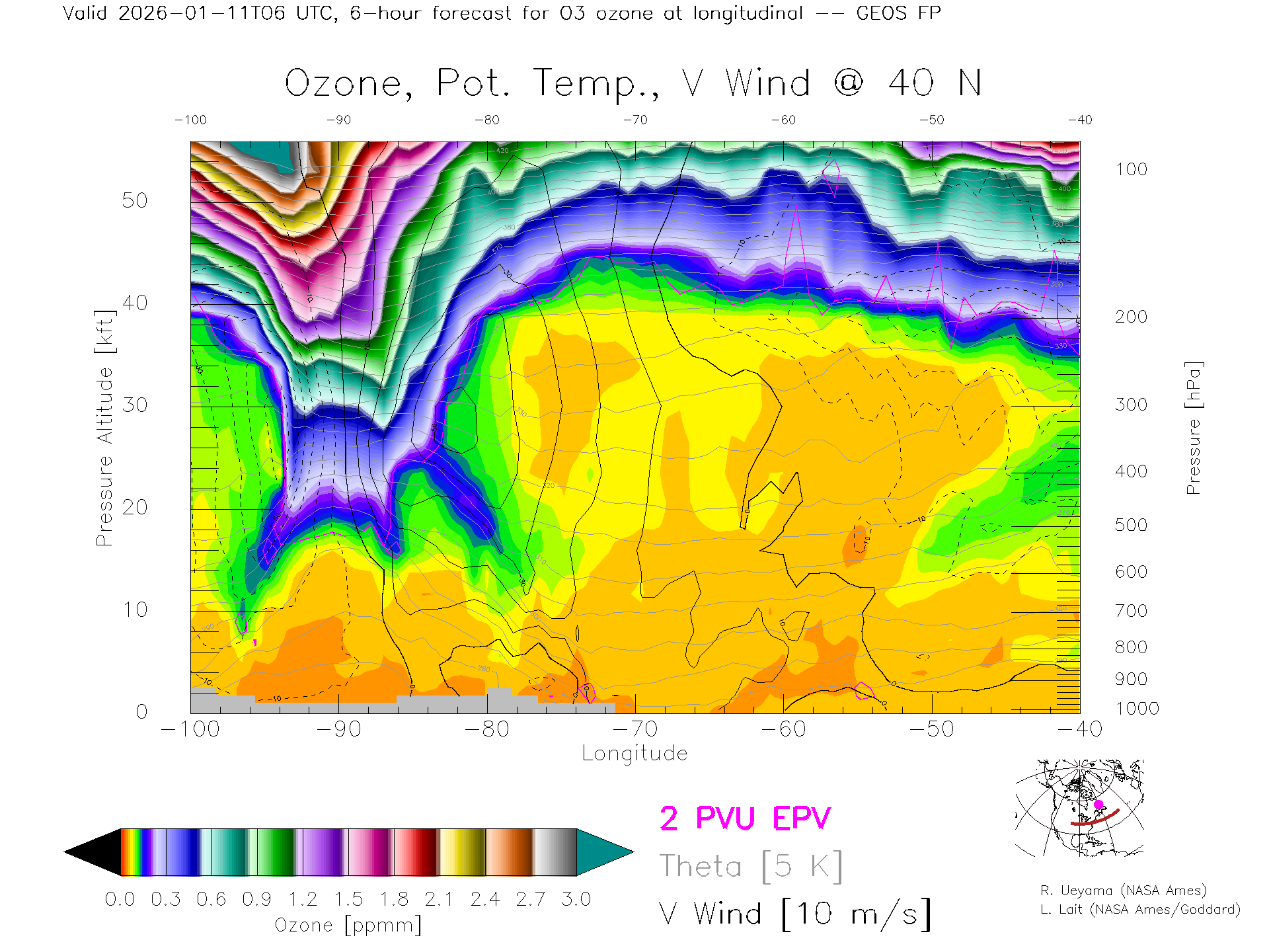 GEOS Forecast Ozone X-Section (40 N)