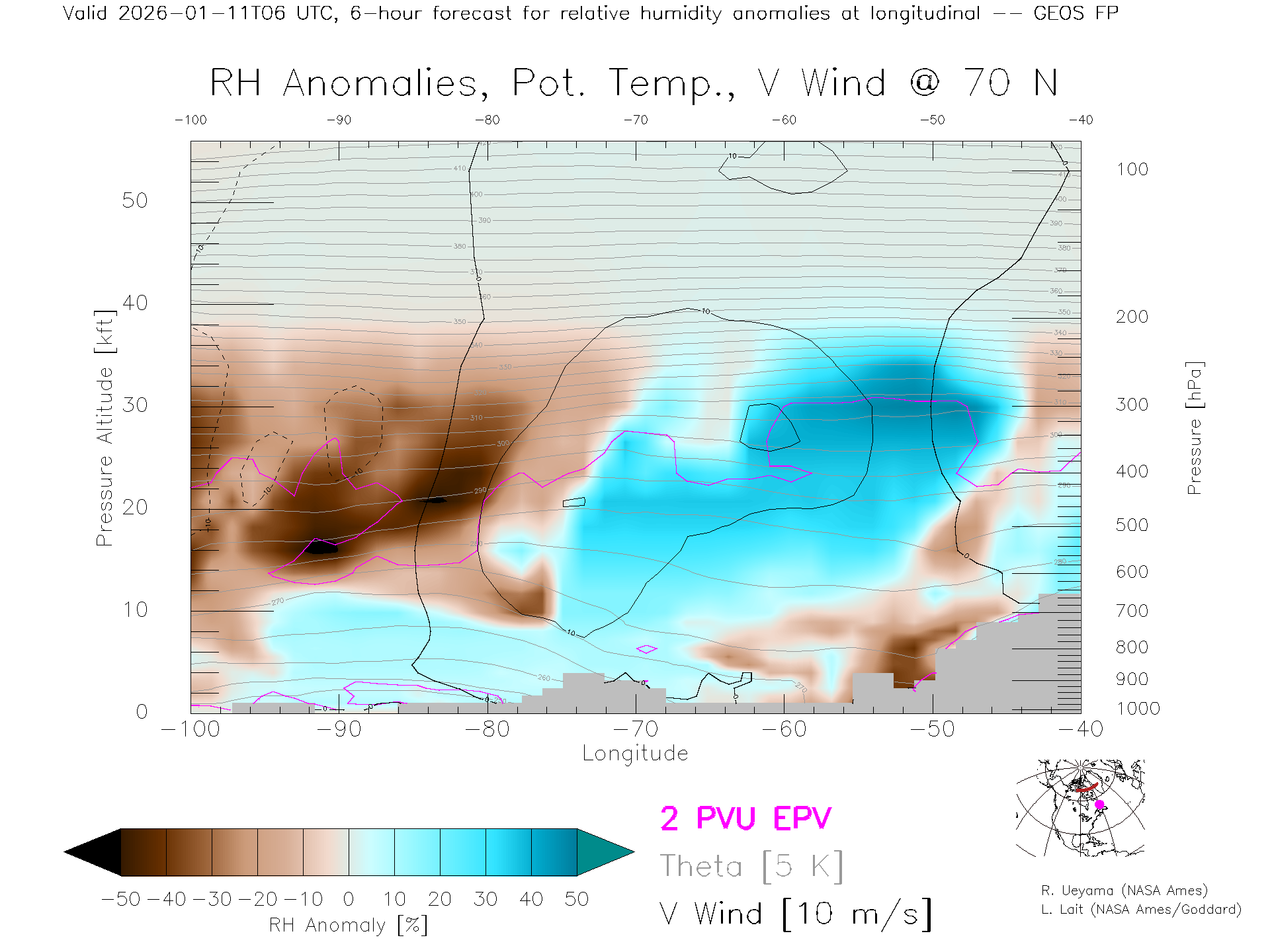 GEOS Forecast Rel. Hum. X-Section (70 N)