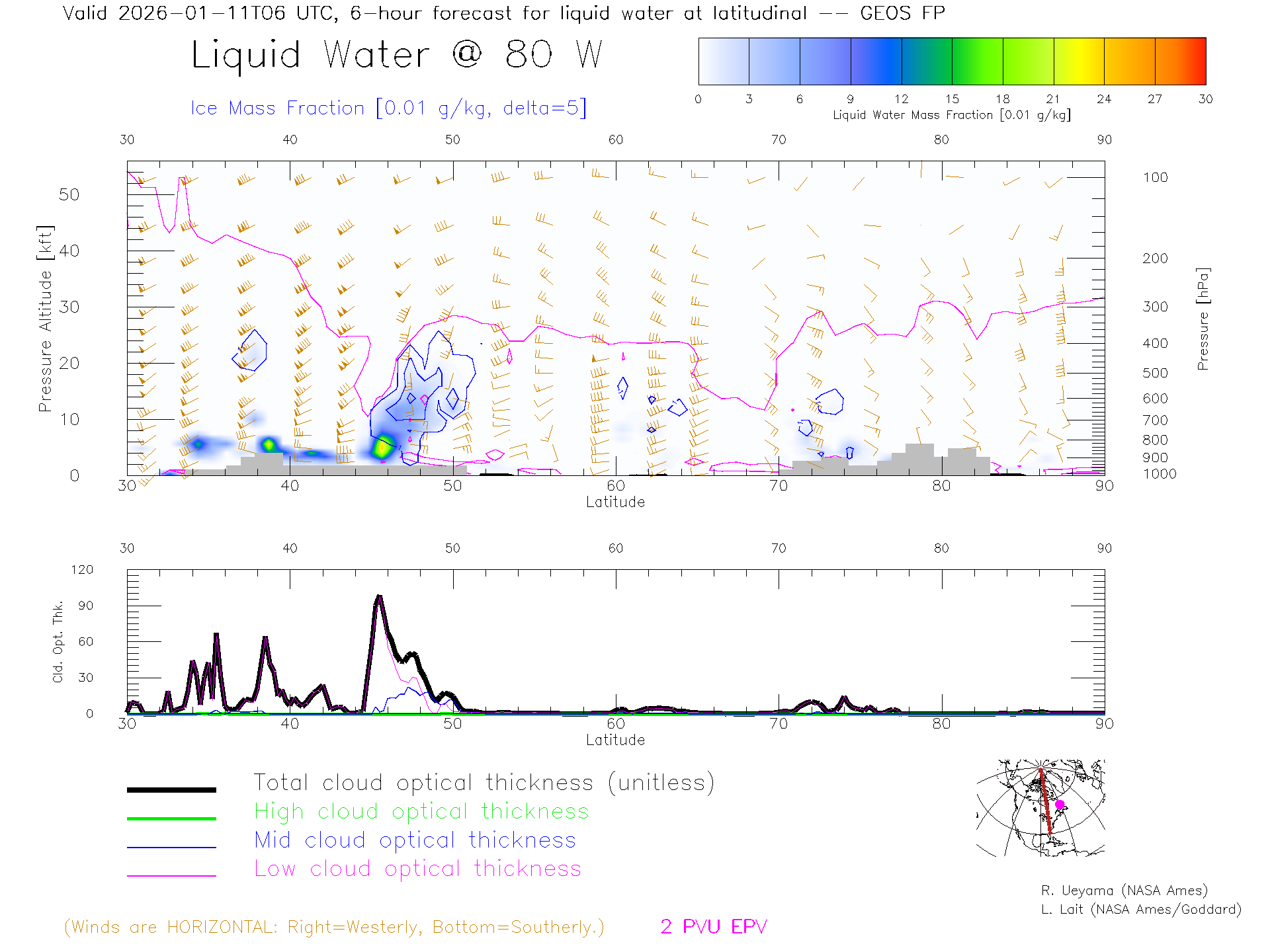 GEOS Forecast Cloud Water Content X-Section (80 W)