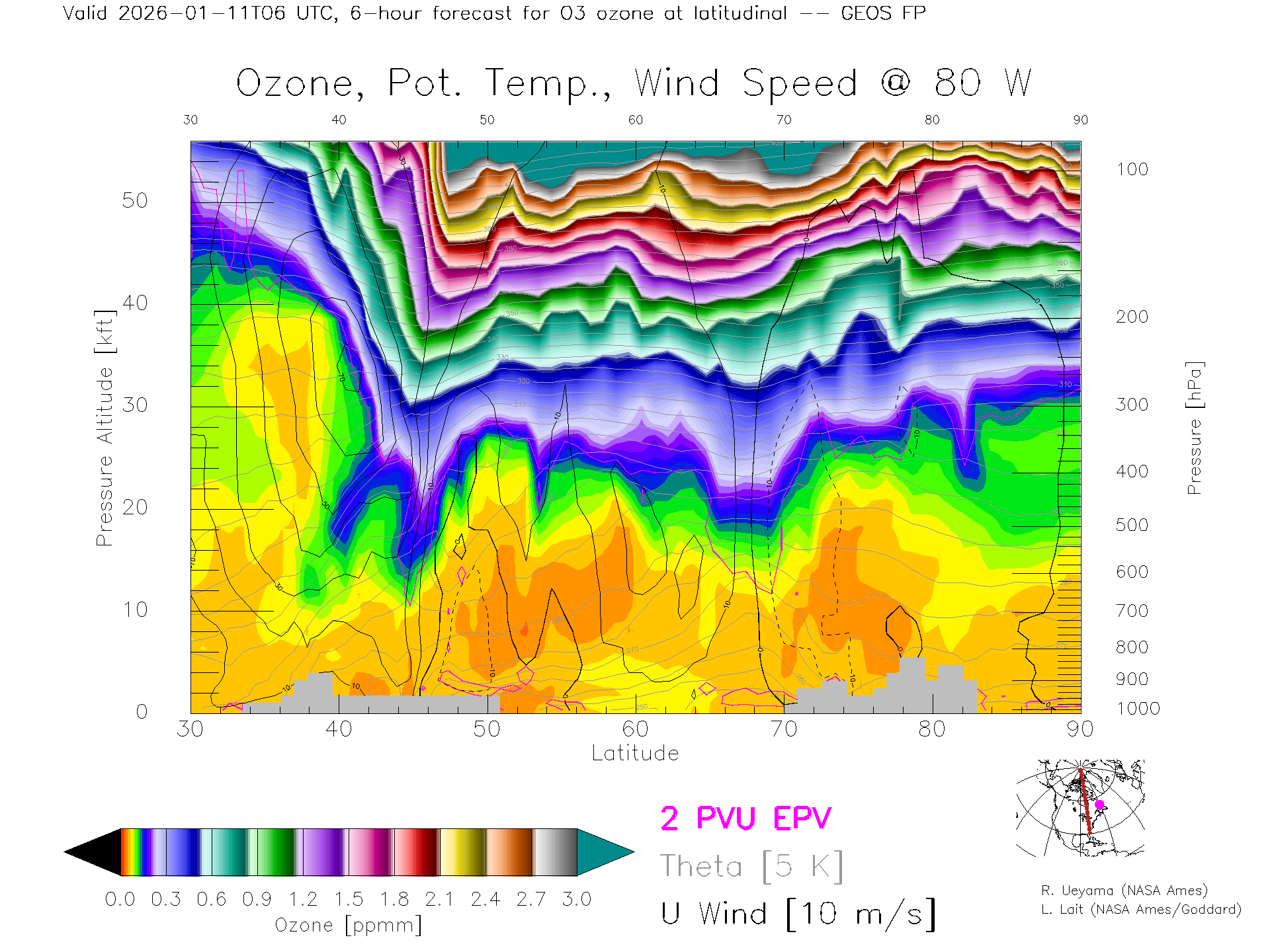 GEOS Forecast Ozone X-Section (80 W)