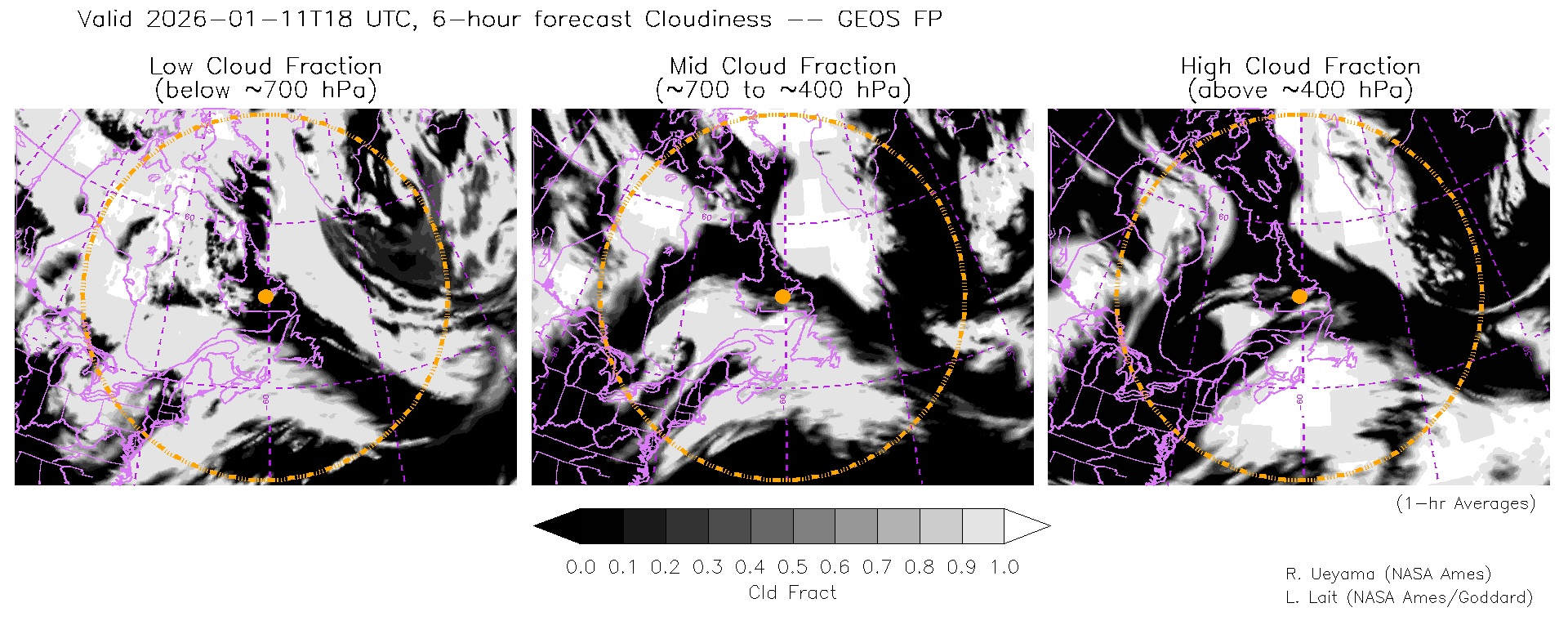 GEOS Forecast Cloud Fraction (High, Mid, Low)