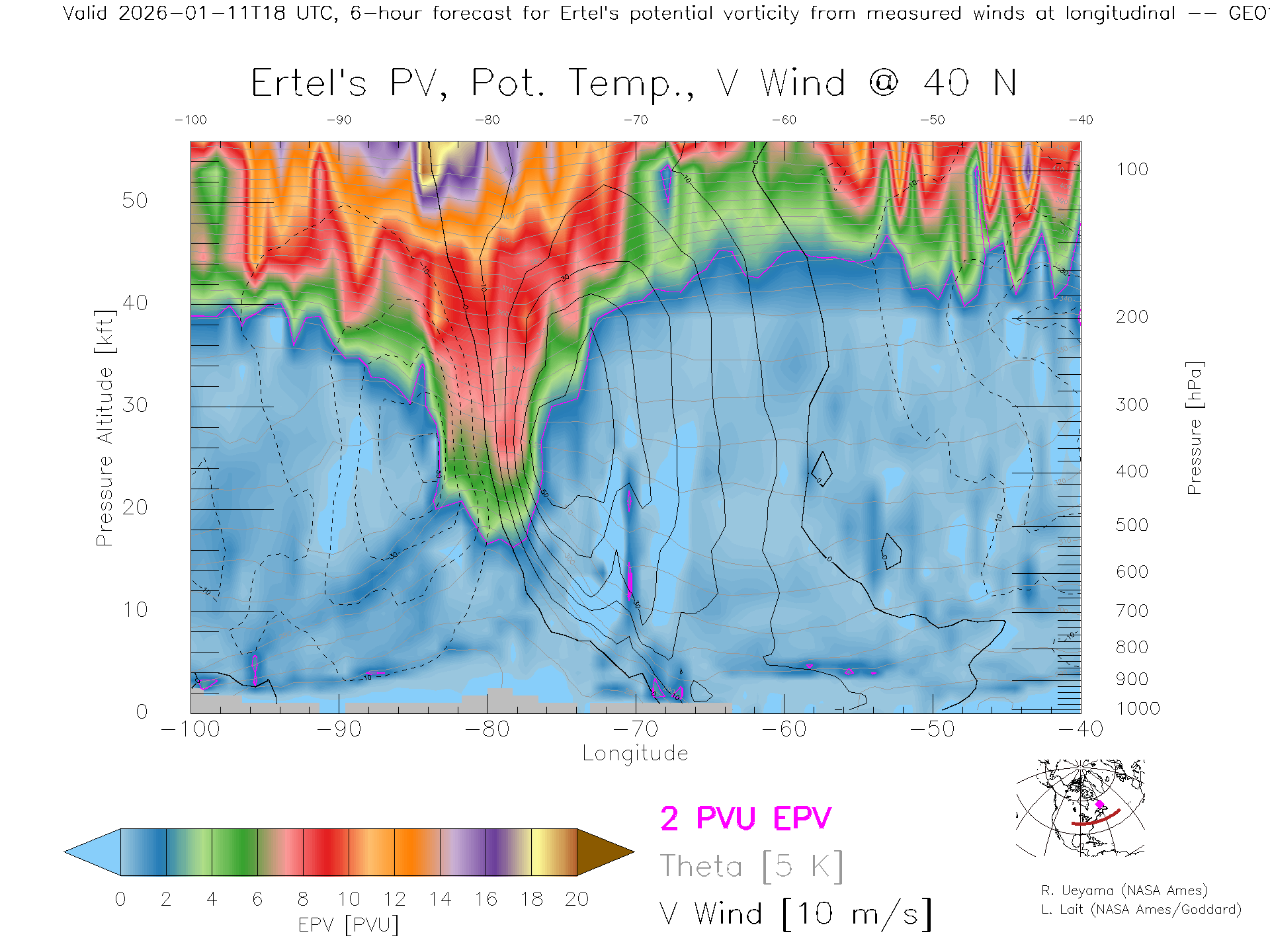 GEOS Forecast PV X-Section (40 N)