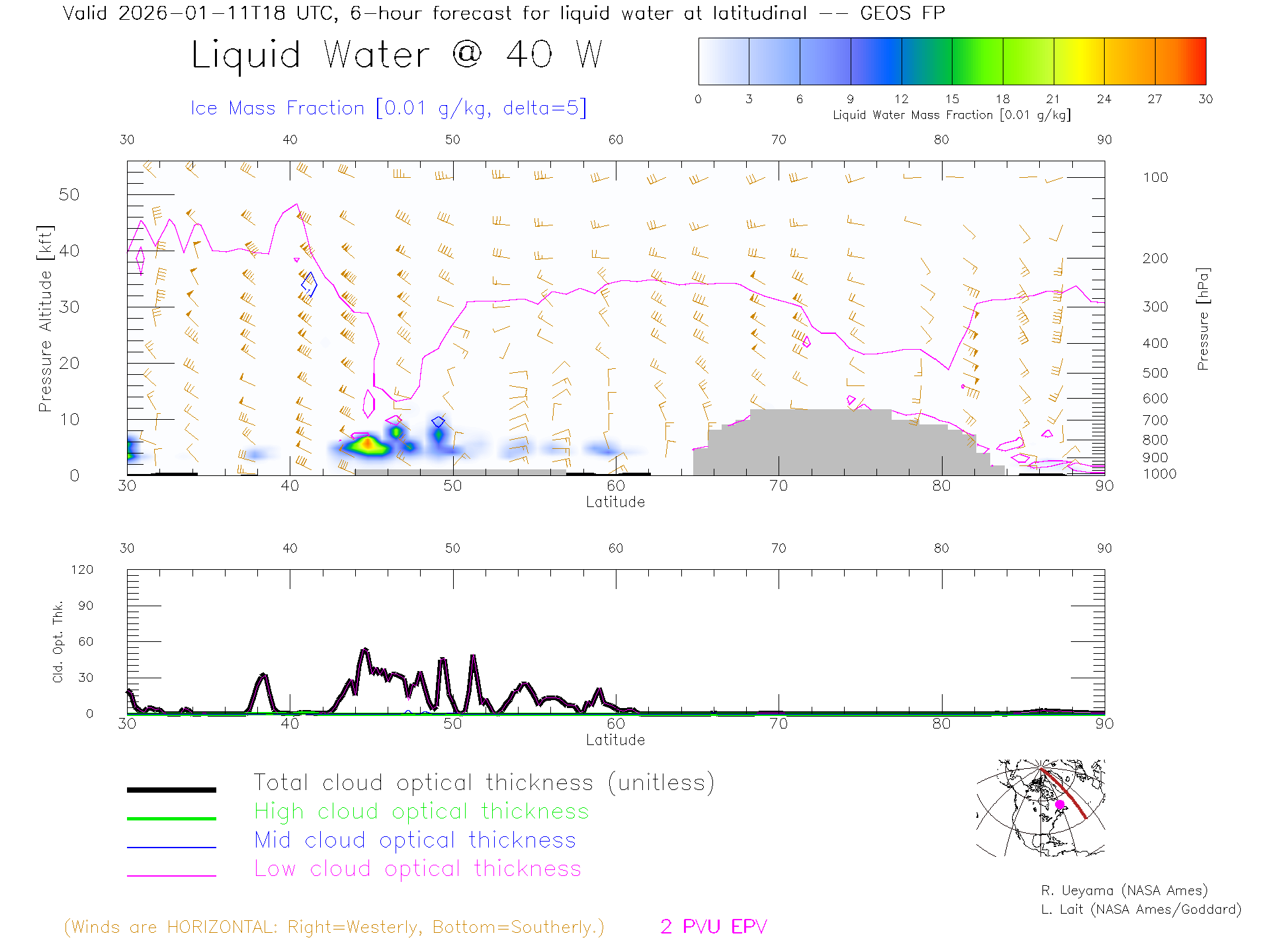 GEOS Forecast Cloud Water Content X-Section (40 W)