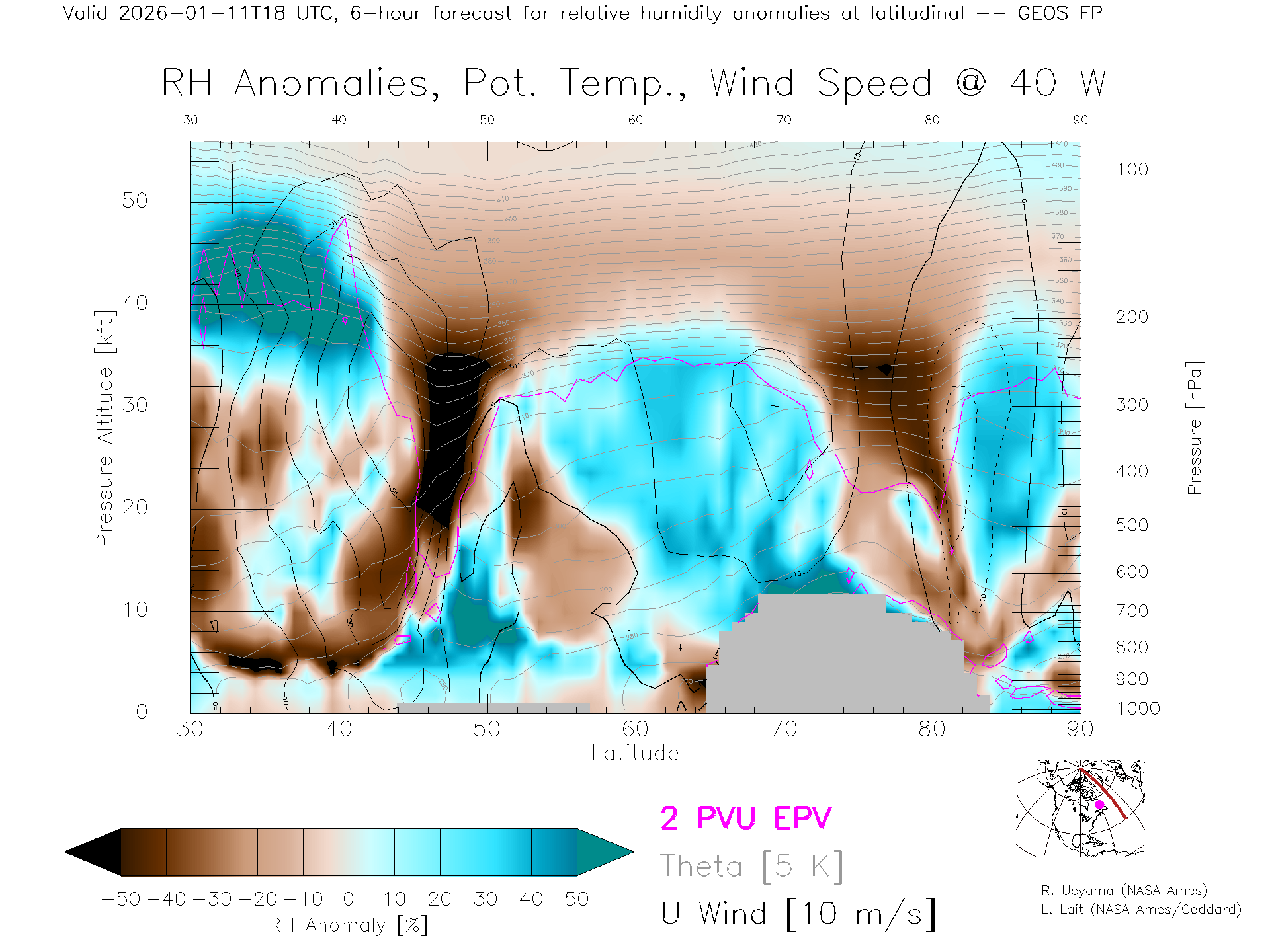 GEOS Forecast Rel. Hum. X-Section (40 W)