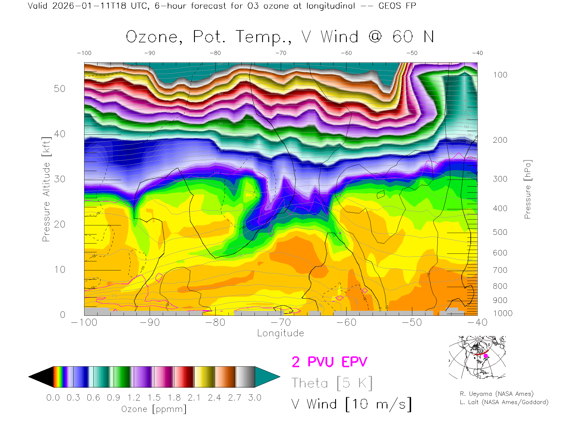 GEOS Forecast Ozone X-Section (60 N)