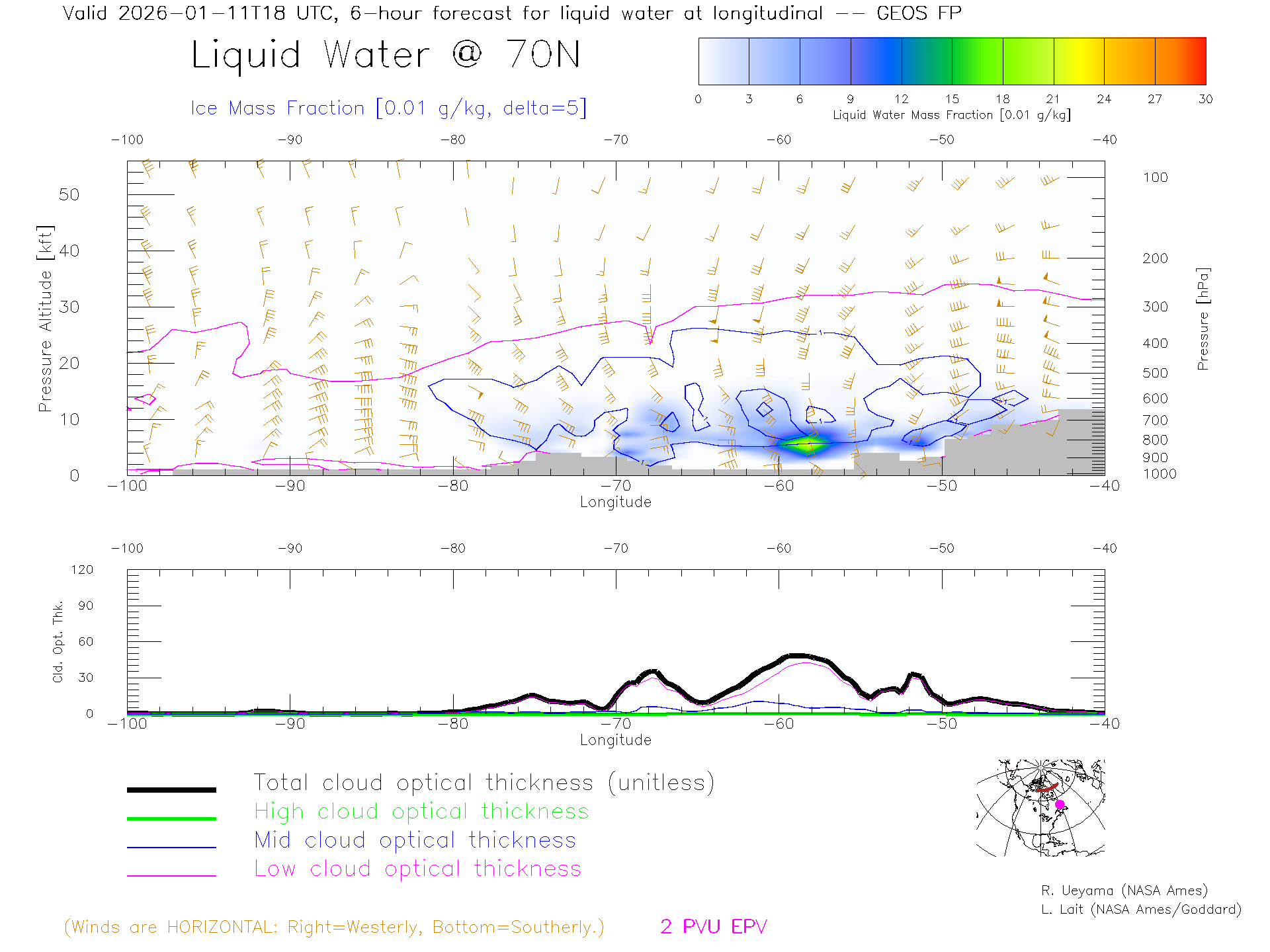 GEOS Forecast Cloud Water Content X-Section (70 N)