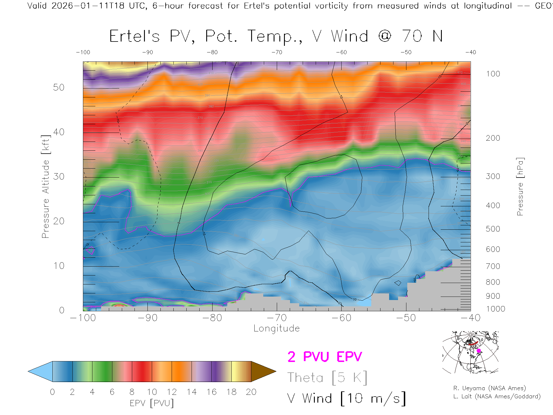 GEOS Forecast PV X-Section (70 N)