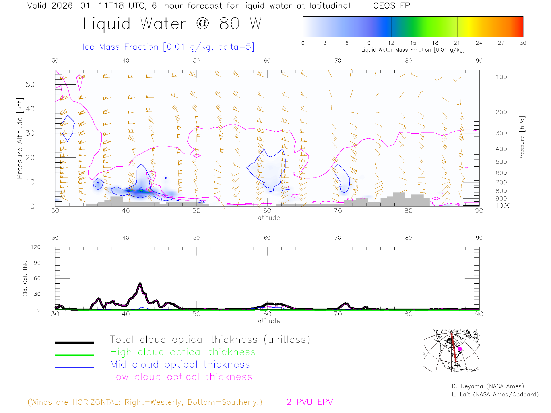 GEOS Forecast Cloud Water Content X-Section (80 W)