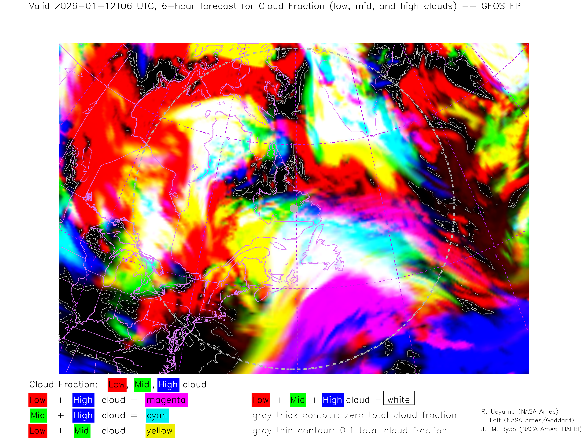 GEOS Forecast Low-, Mid- and High-level Cloud Fraction