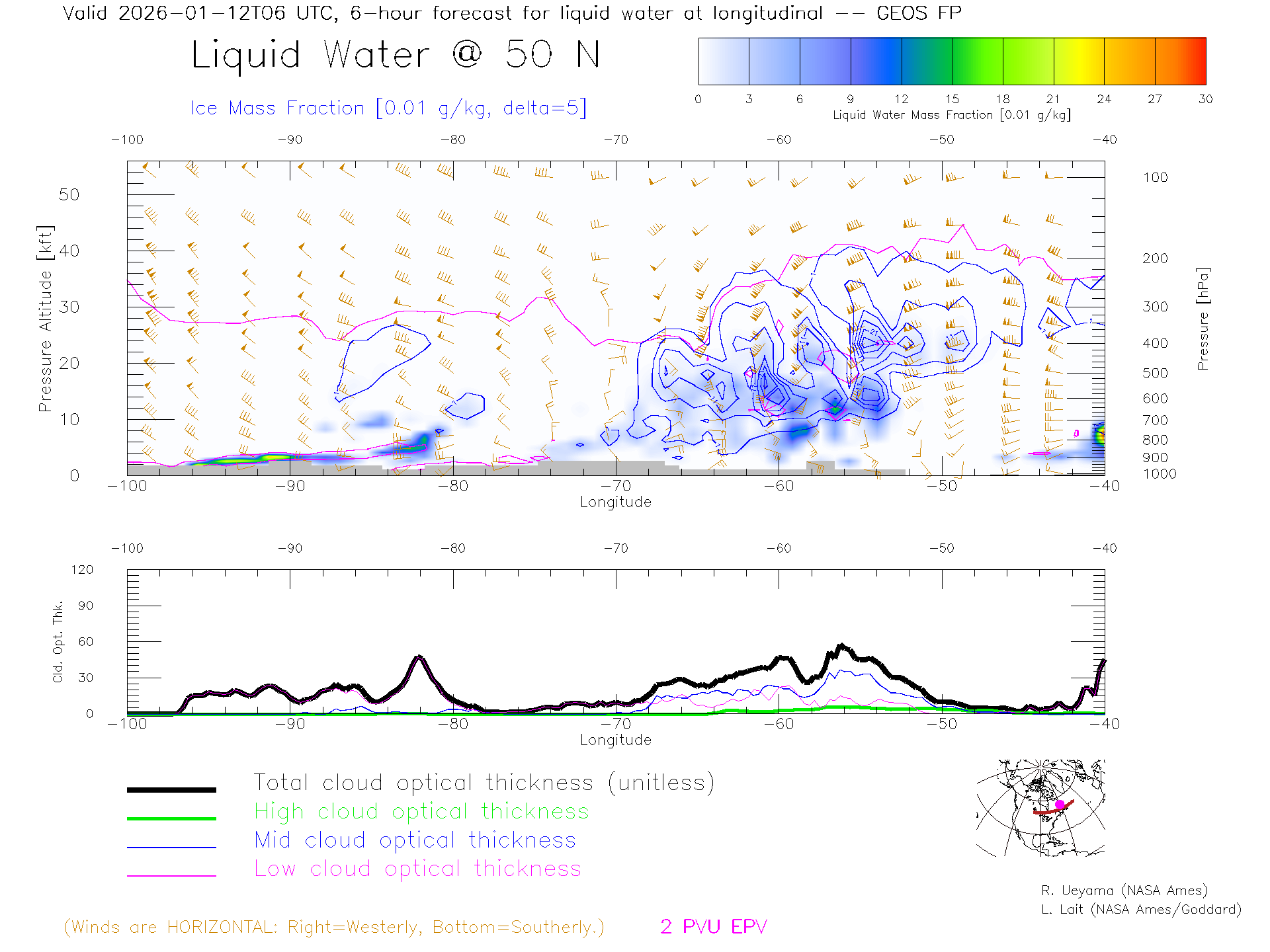 GEOS Forecast Cloud Water Content X-Section (50 N)