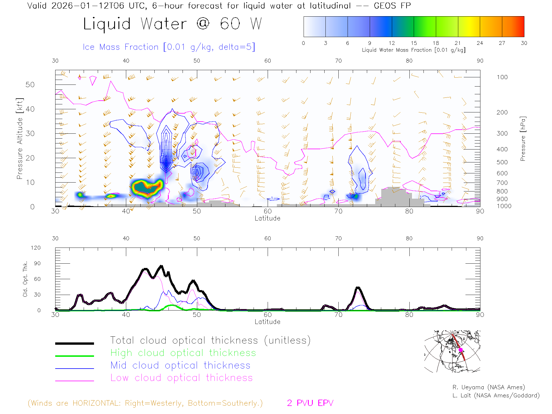 GEOS Forecast Cloud Water Content X-Section (60 W)