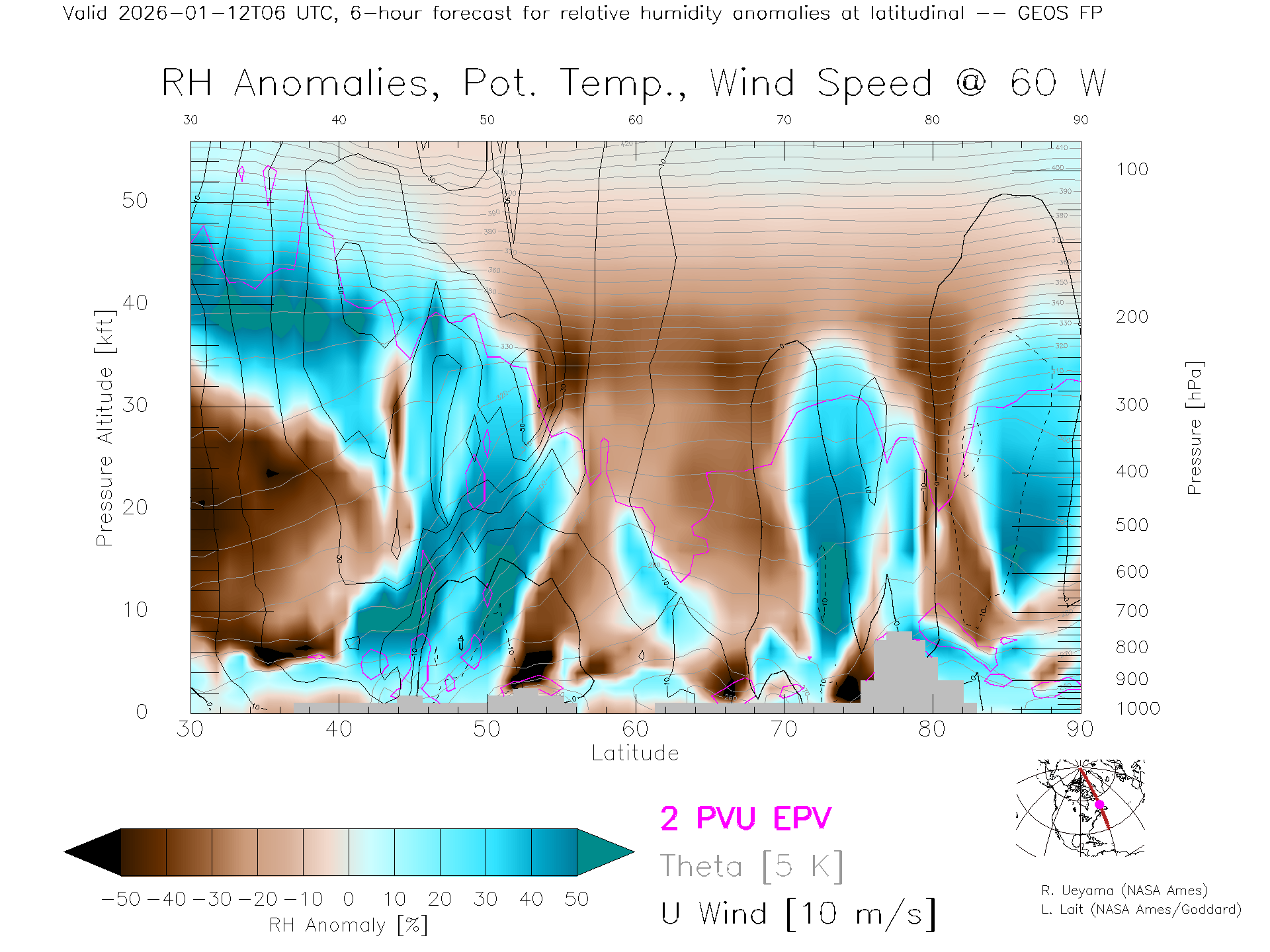 GEOS Forecast Rel. Hum. X-Section (60 W)