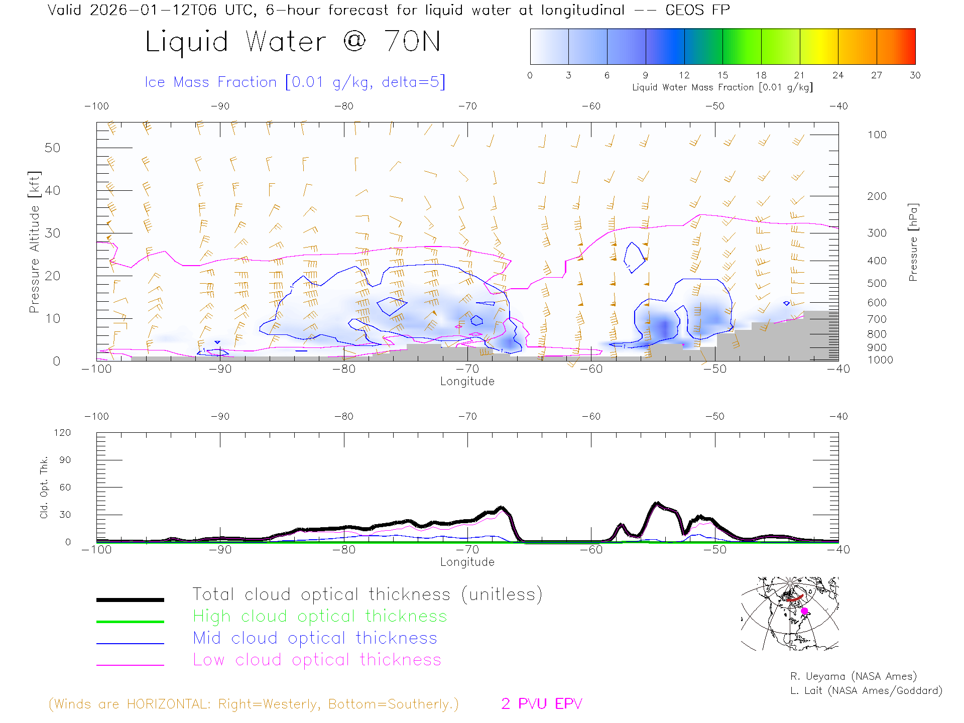 GEOS Forecast Cloud Water Content X-Section (70 N)