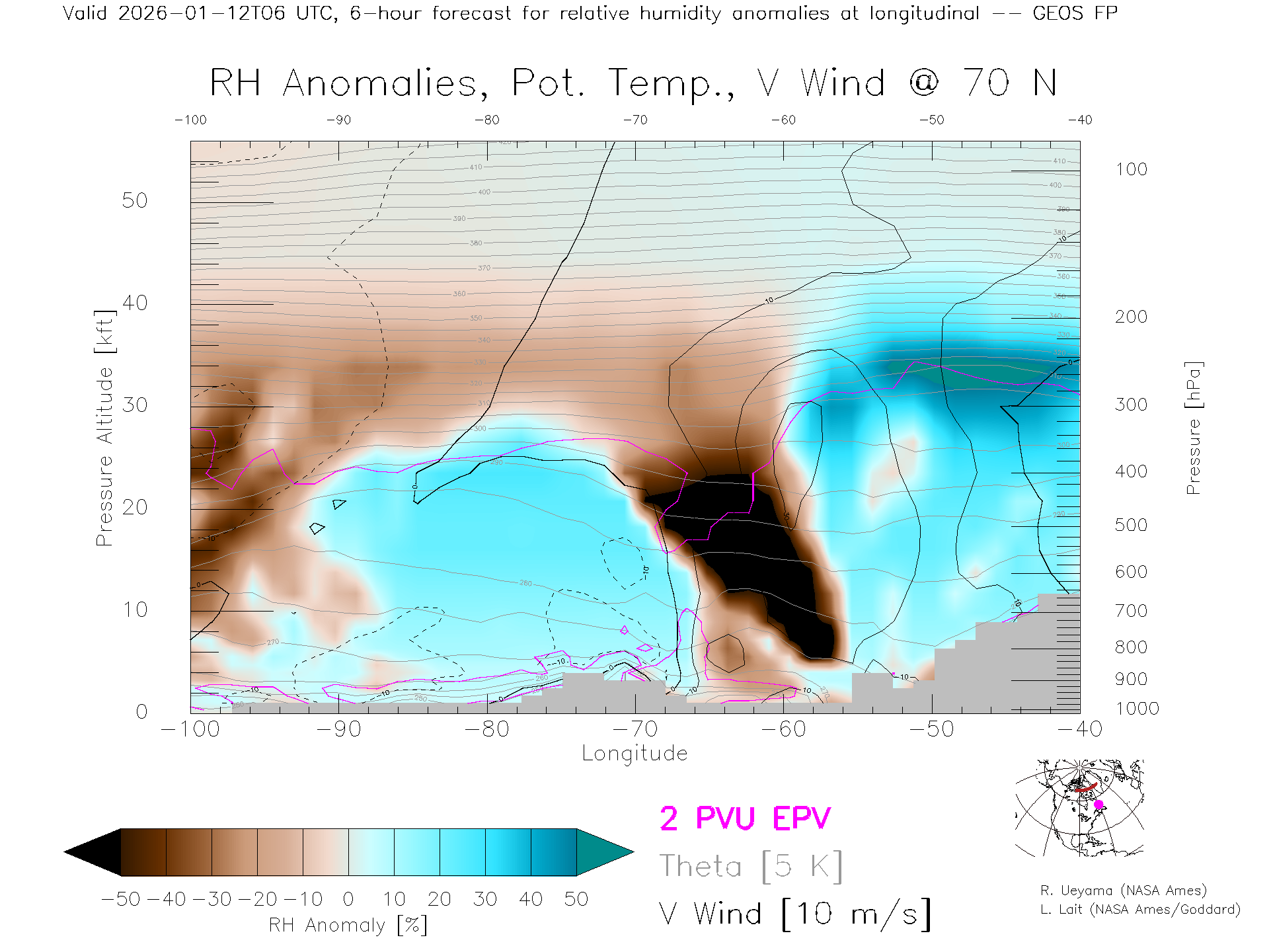 GEOS Forecast Rel. Hum. X-Section (70 N)