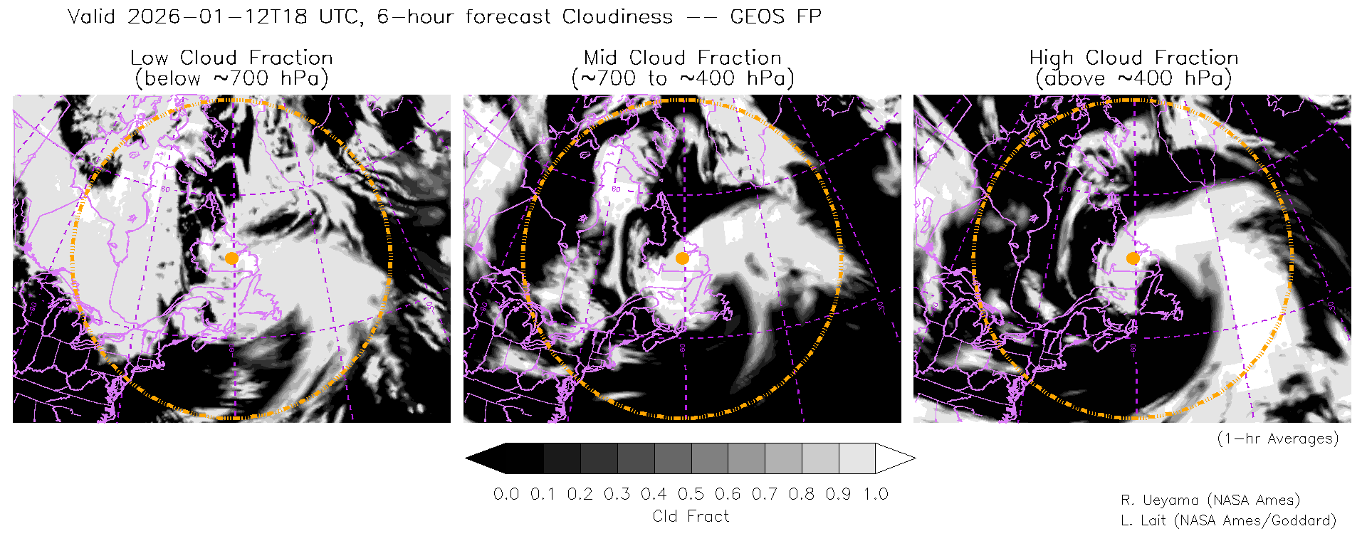 GEOS Forecast Cloud Fraction (High, Mid, Low)
