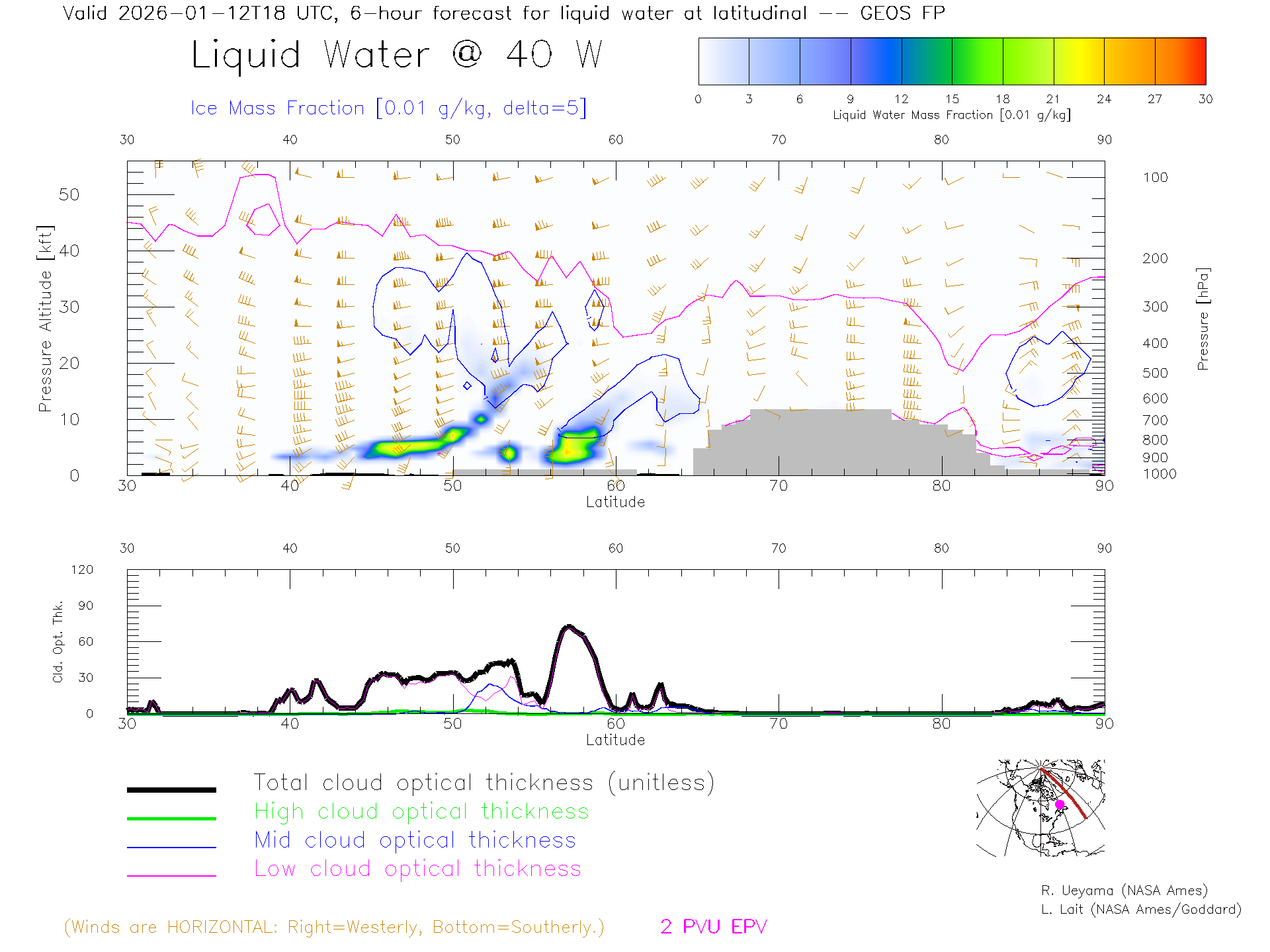 GEOS Forecast Cloud Water Content X-Section (40 W)