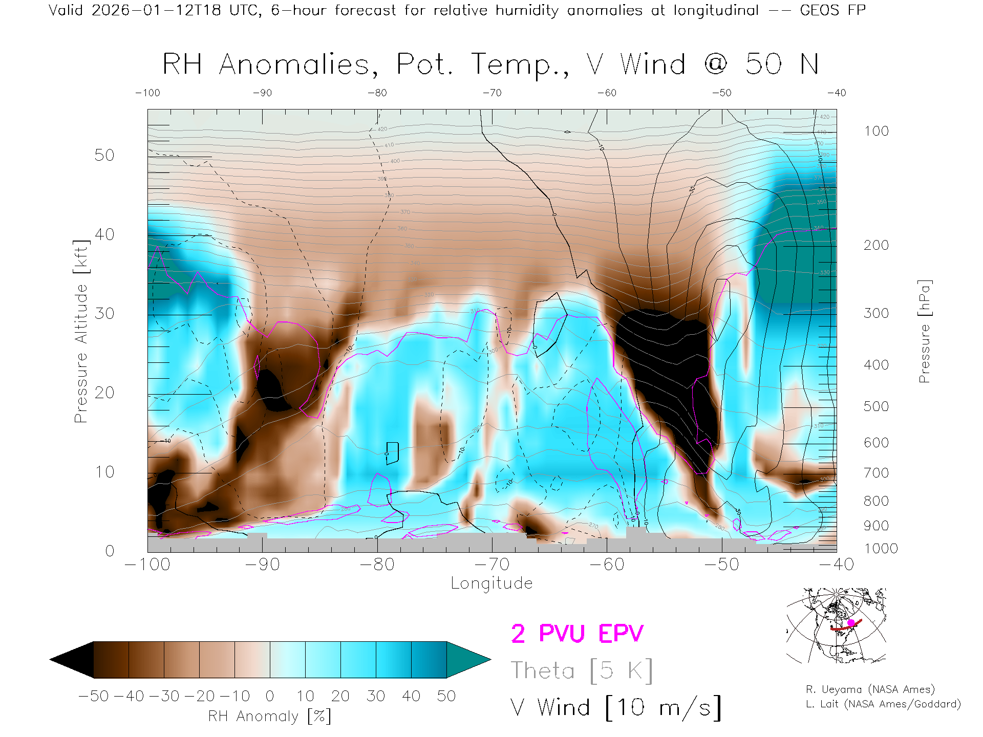 GEOS Forecast Rel. Hum. X-Section (50 N)