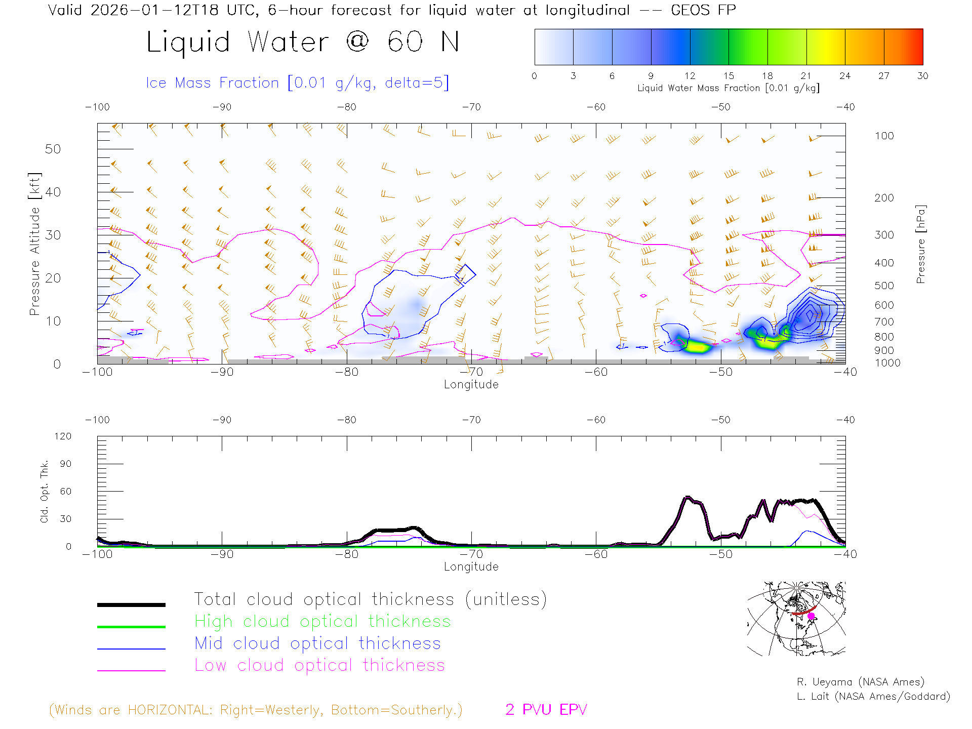 GEOS Forecast Cloud Water Content X-Section (60 N)