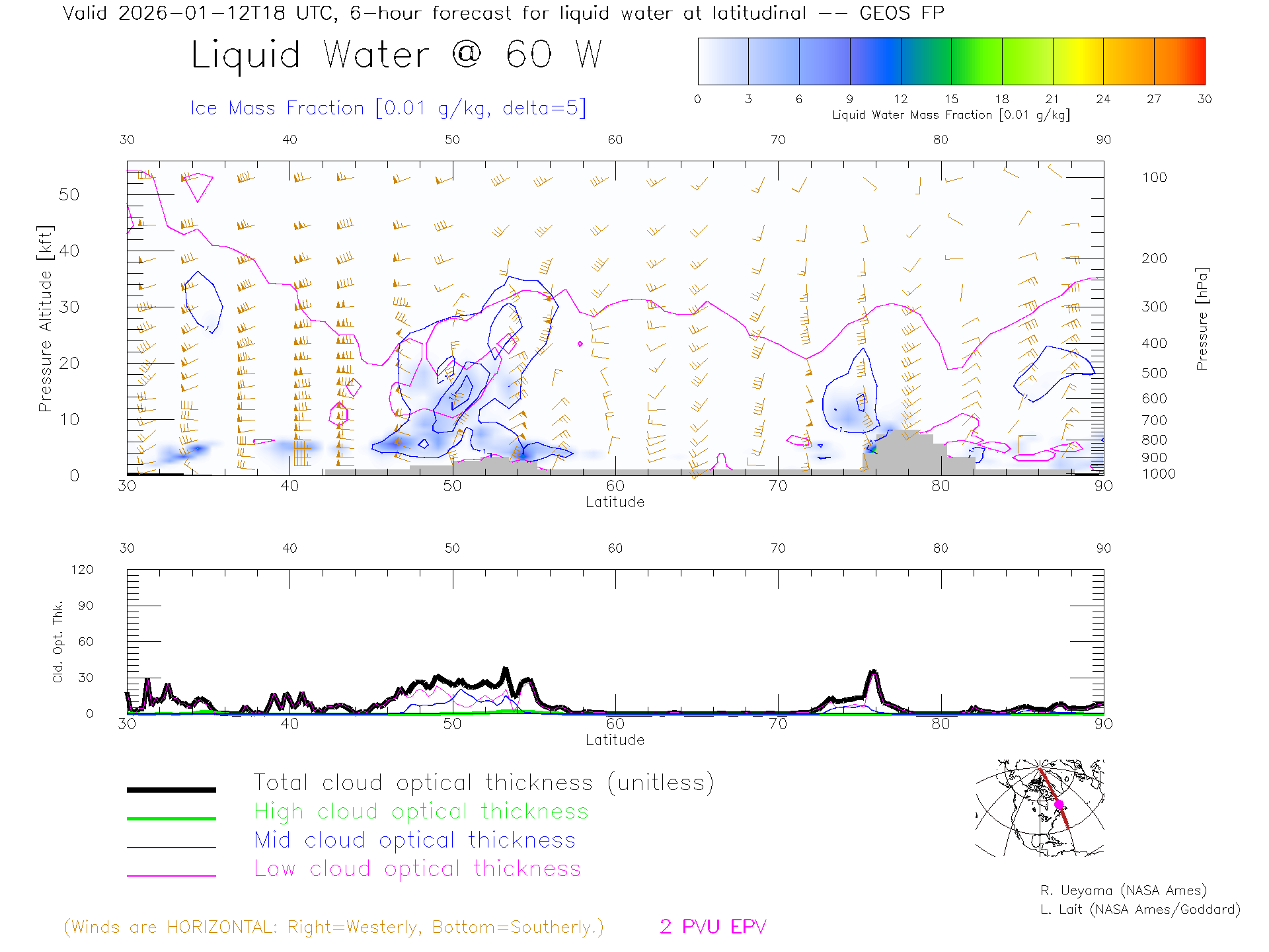GEOS Forecast Cloud Water Content X-Section (60 W)