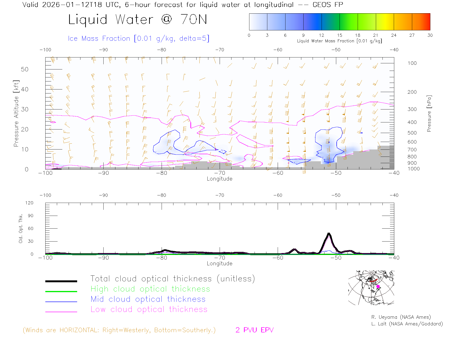 GEOS Forecast Cloud Water Content X-Section (70 N)