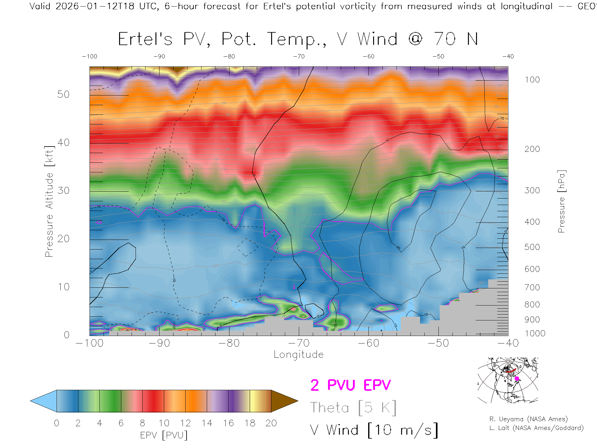 GEOS Forecast PV X-Section (70 N)