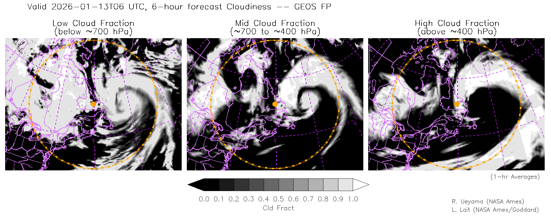GEOS Forecast Cloud Fraction (High, Mid, Low)