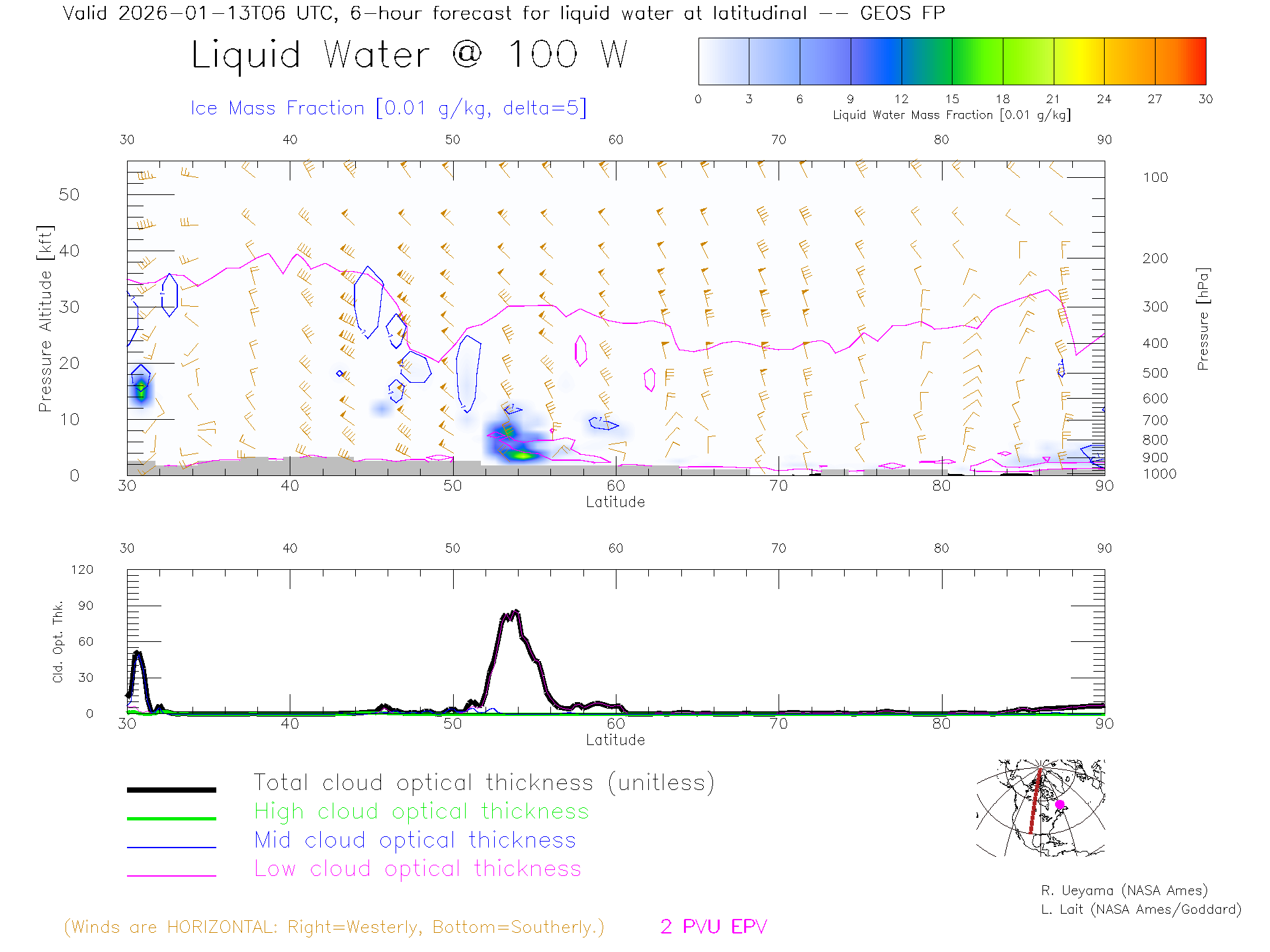 GEOS Forecast Cloud Water Content X-Section (100 W)