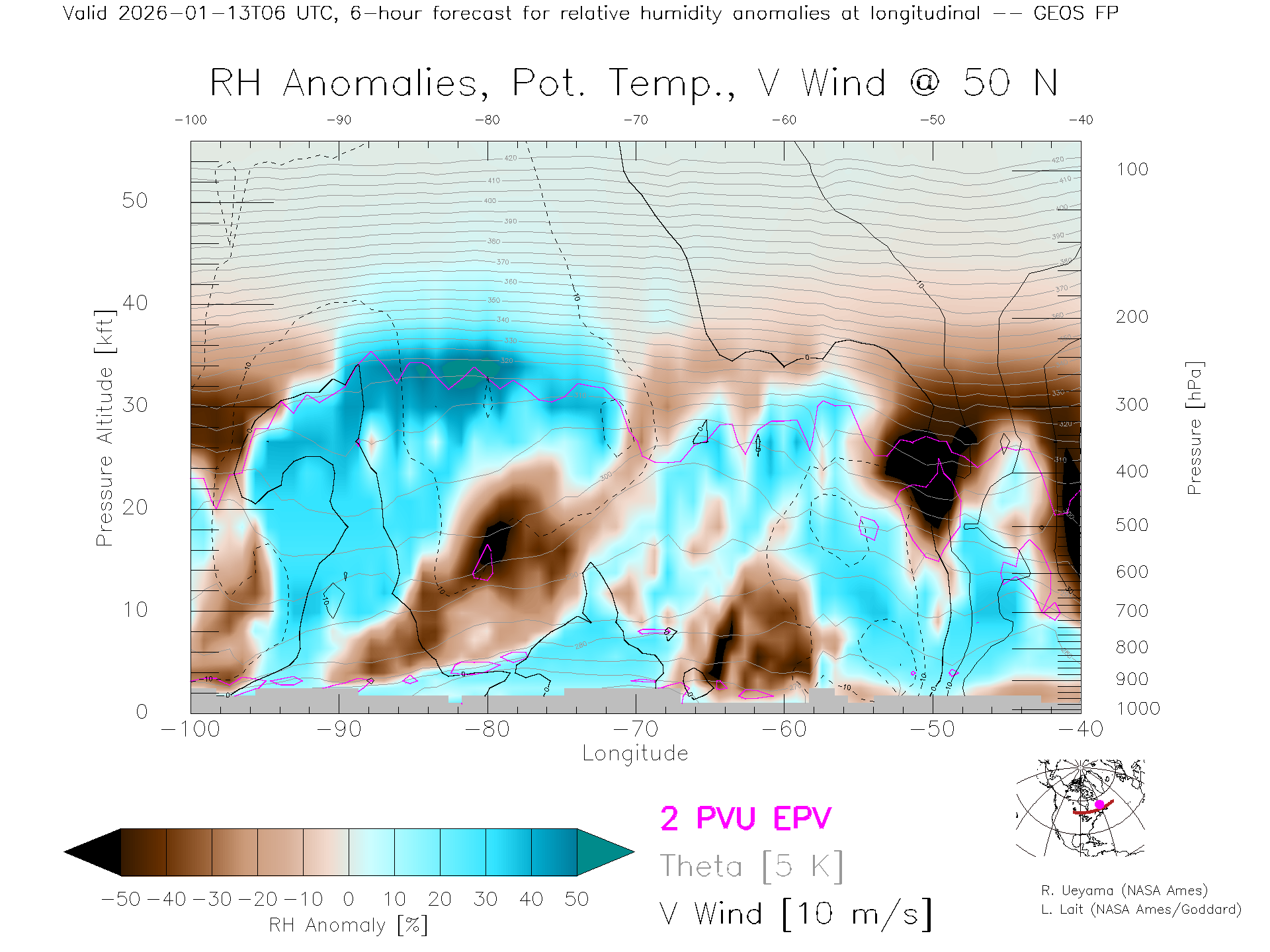GEOS Forecast Rel. Hum. X-Section (50 N)