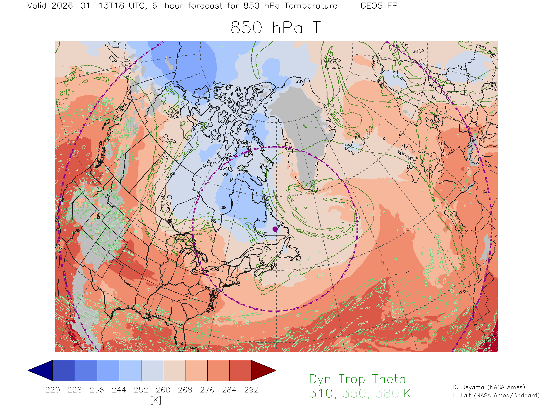 GEOS Forecast 850 hPa Temp.