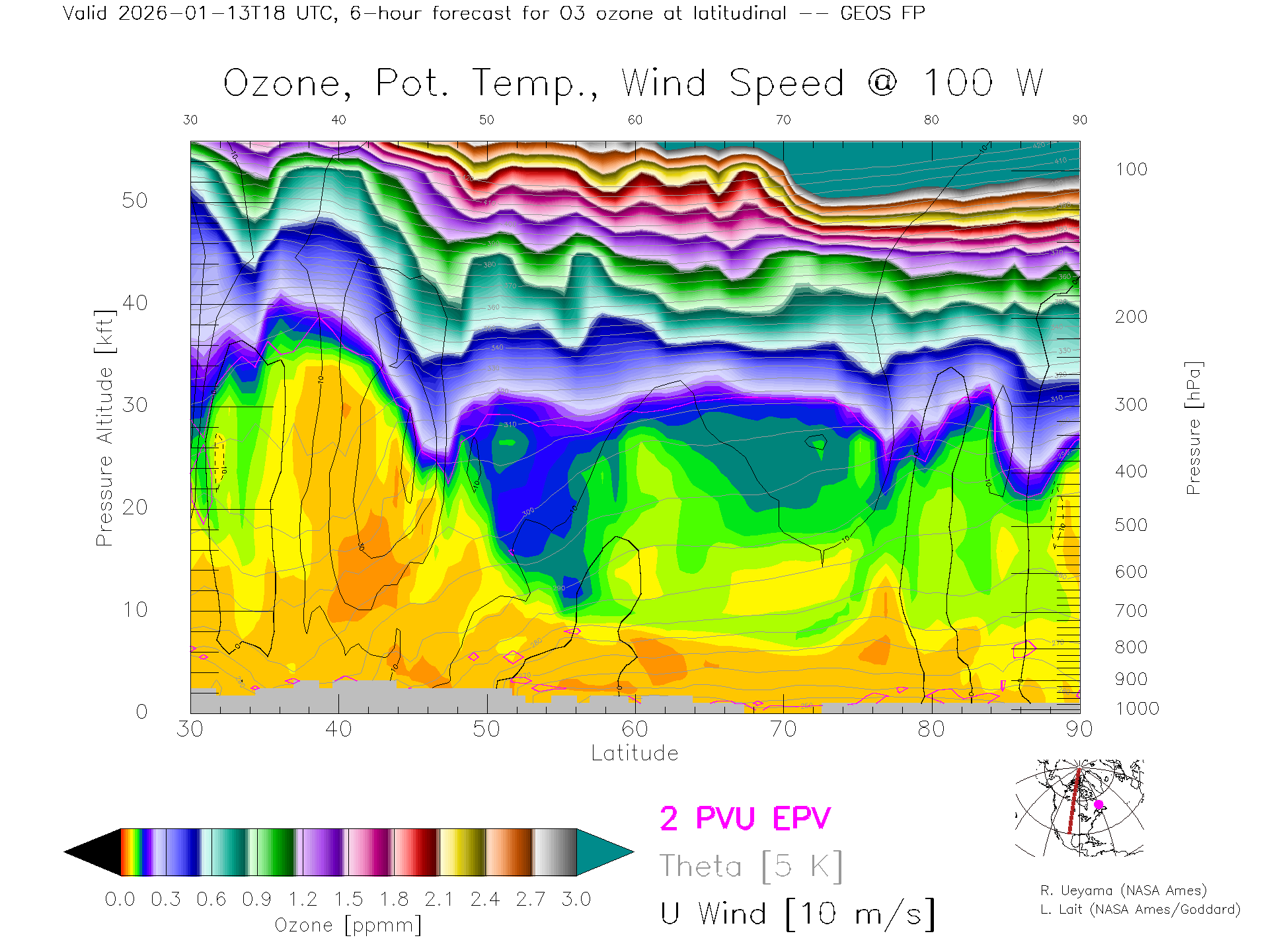 GEOS Forecast Ozone X-Section (100 W)