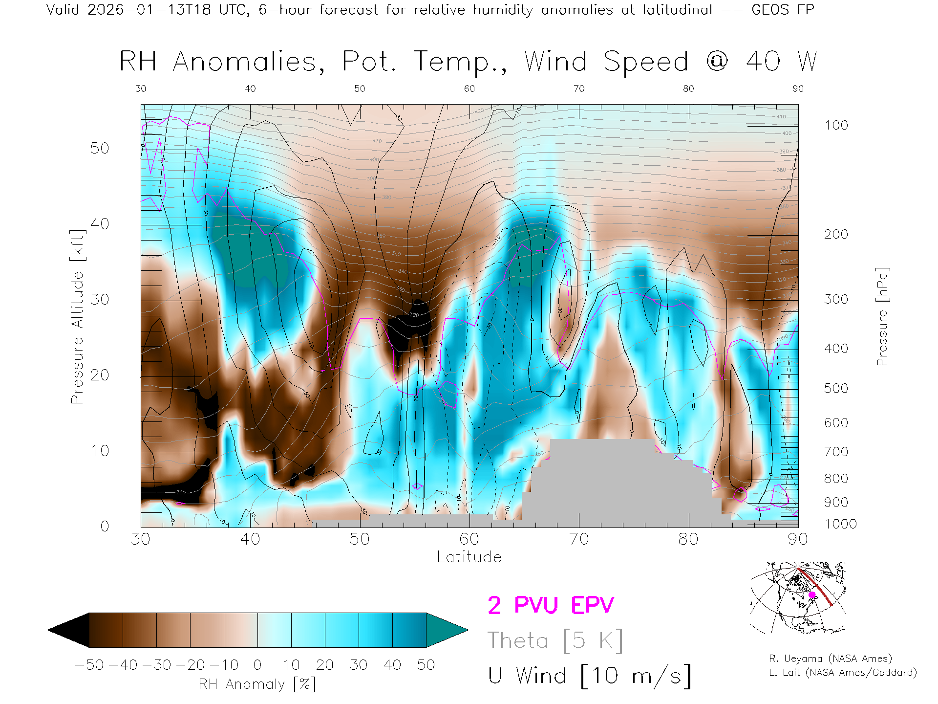 GEOS Forecast Rel. Hum. X-Section (40 W)