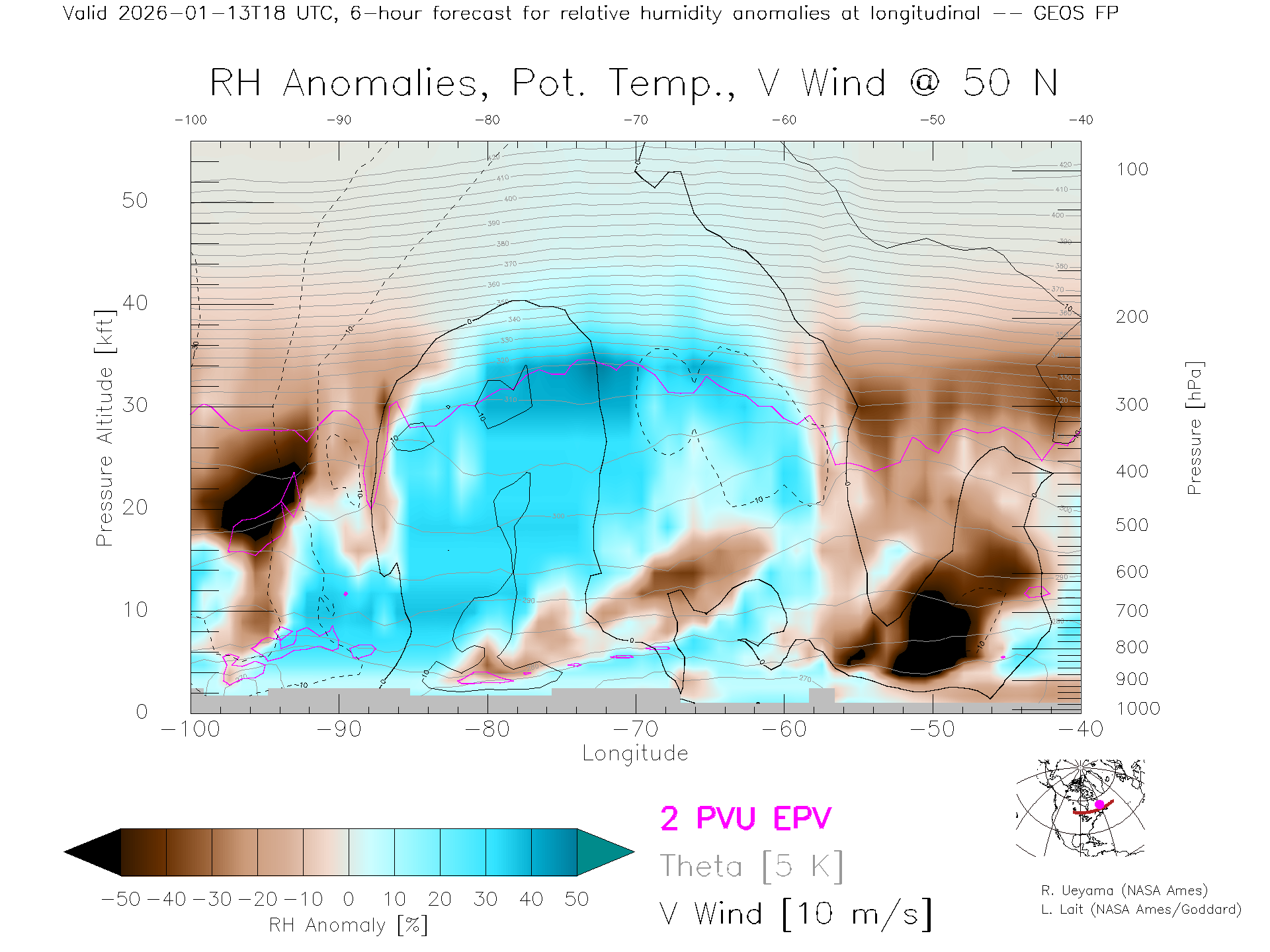 GEOS Forecast Rel. Hum. X-Section (50 N)