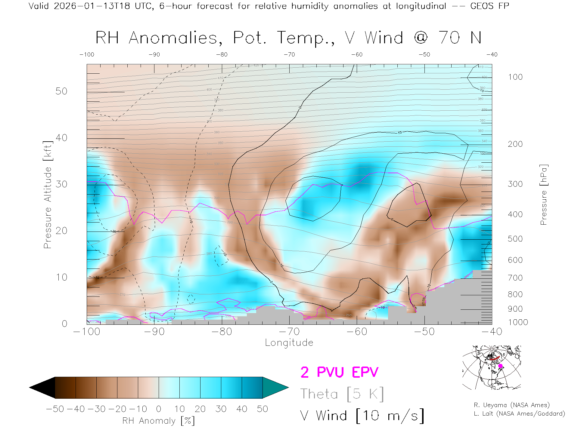 GEOS Forecast Rel. Hum. X-Section (70 N)