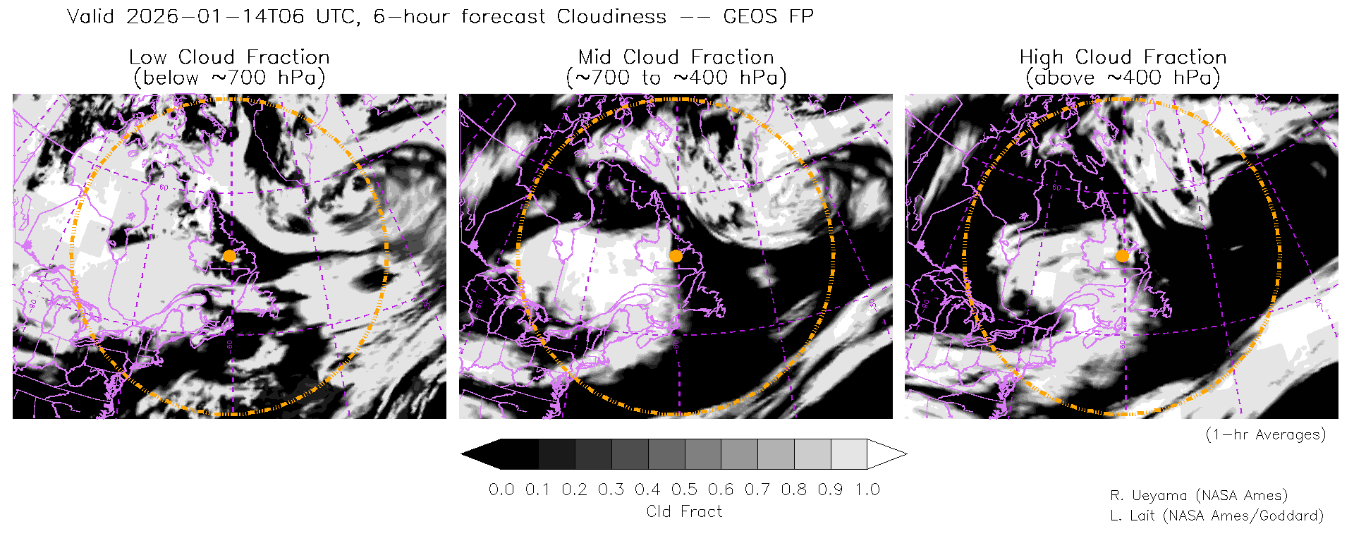 GEOS Forecast Cloud Fraction (High, Mid, Low)