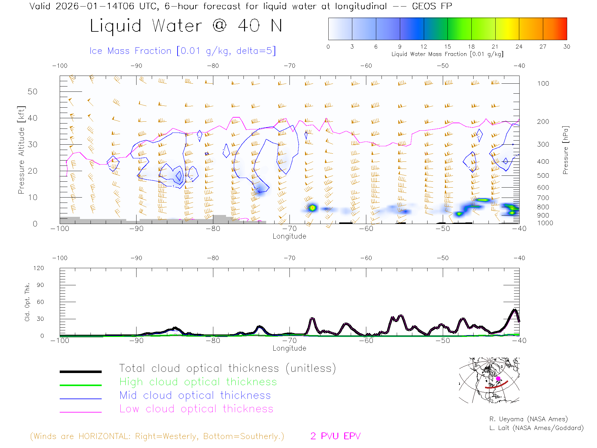 GEOS Forecast Cloud Water Content X-Section (40 N)