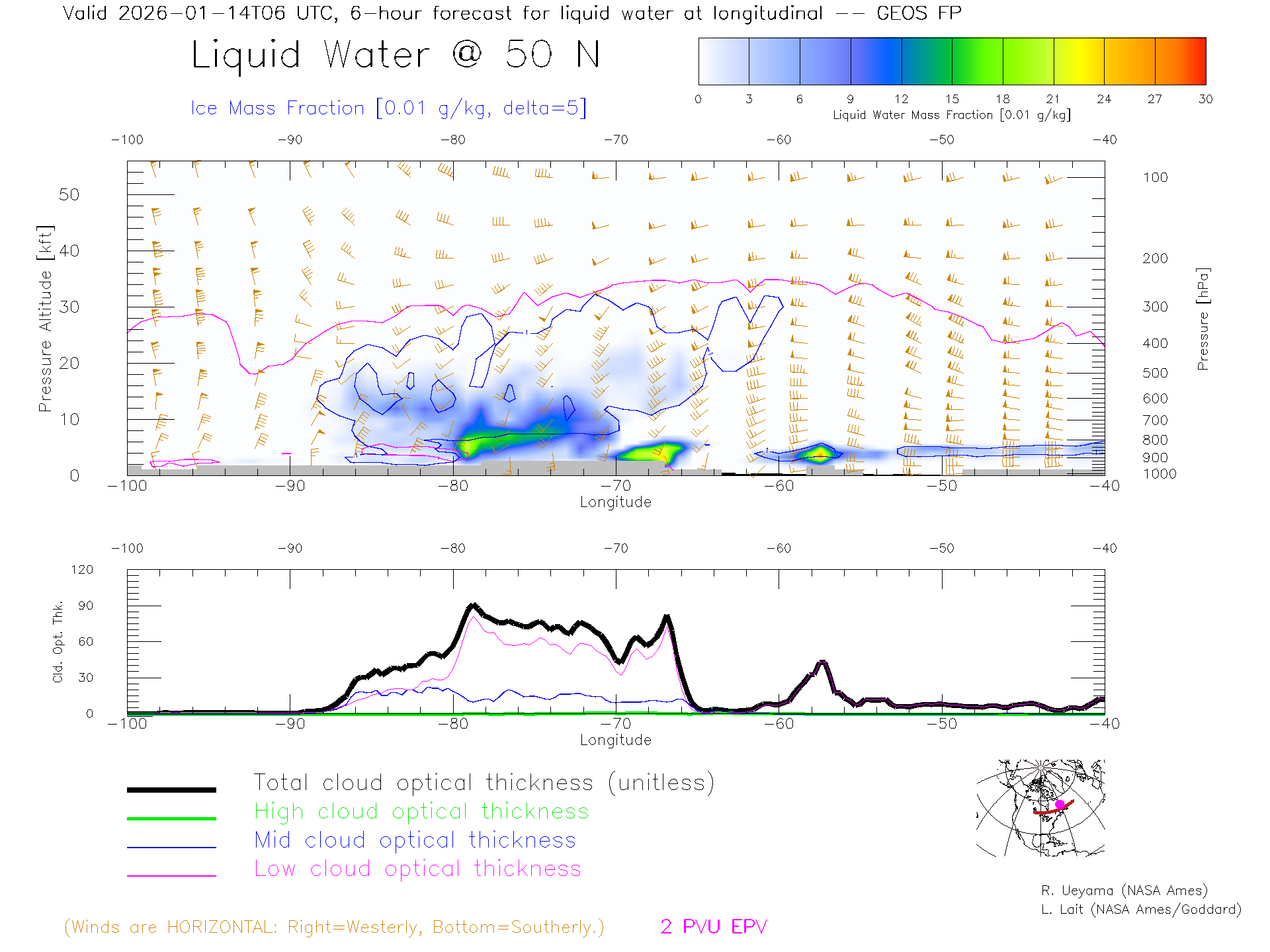 GEOS Forecast Cloud Water Content X-Section (50 N)