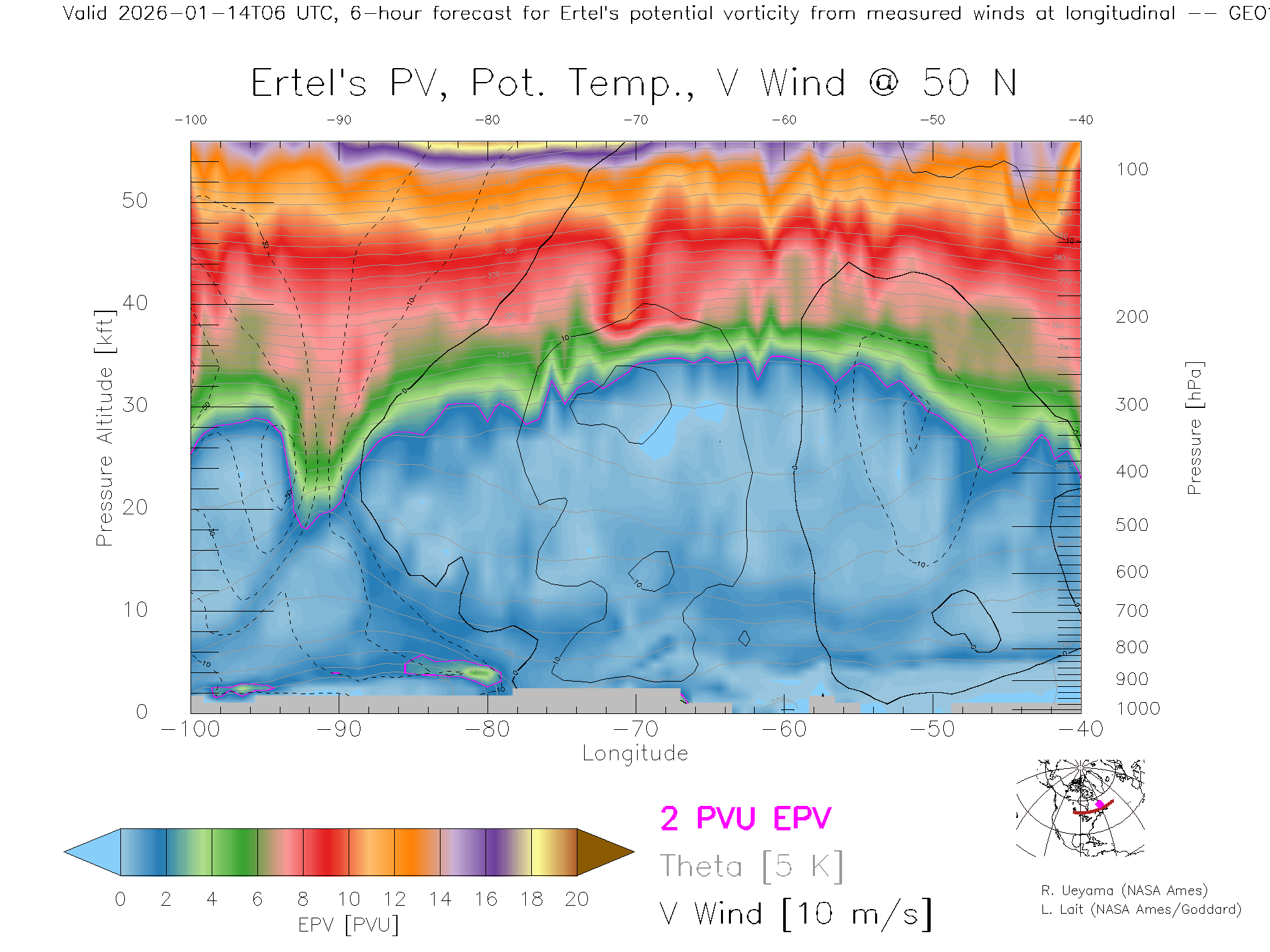 GEOS Forecast PV X-Section (50 N)