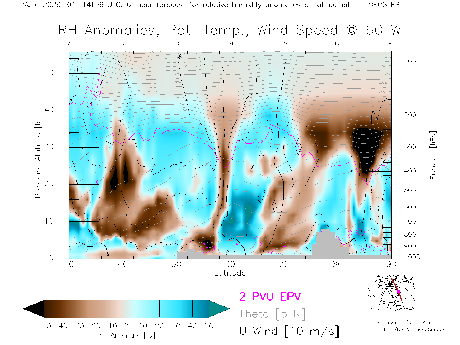 GEOS Forecast Rel. Hum. X-Section (60 W)