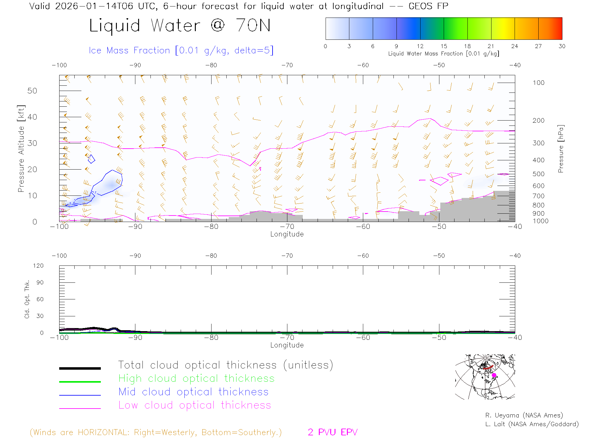 GEOS Forecast Cloud Water Content X-Section (70 N)