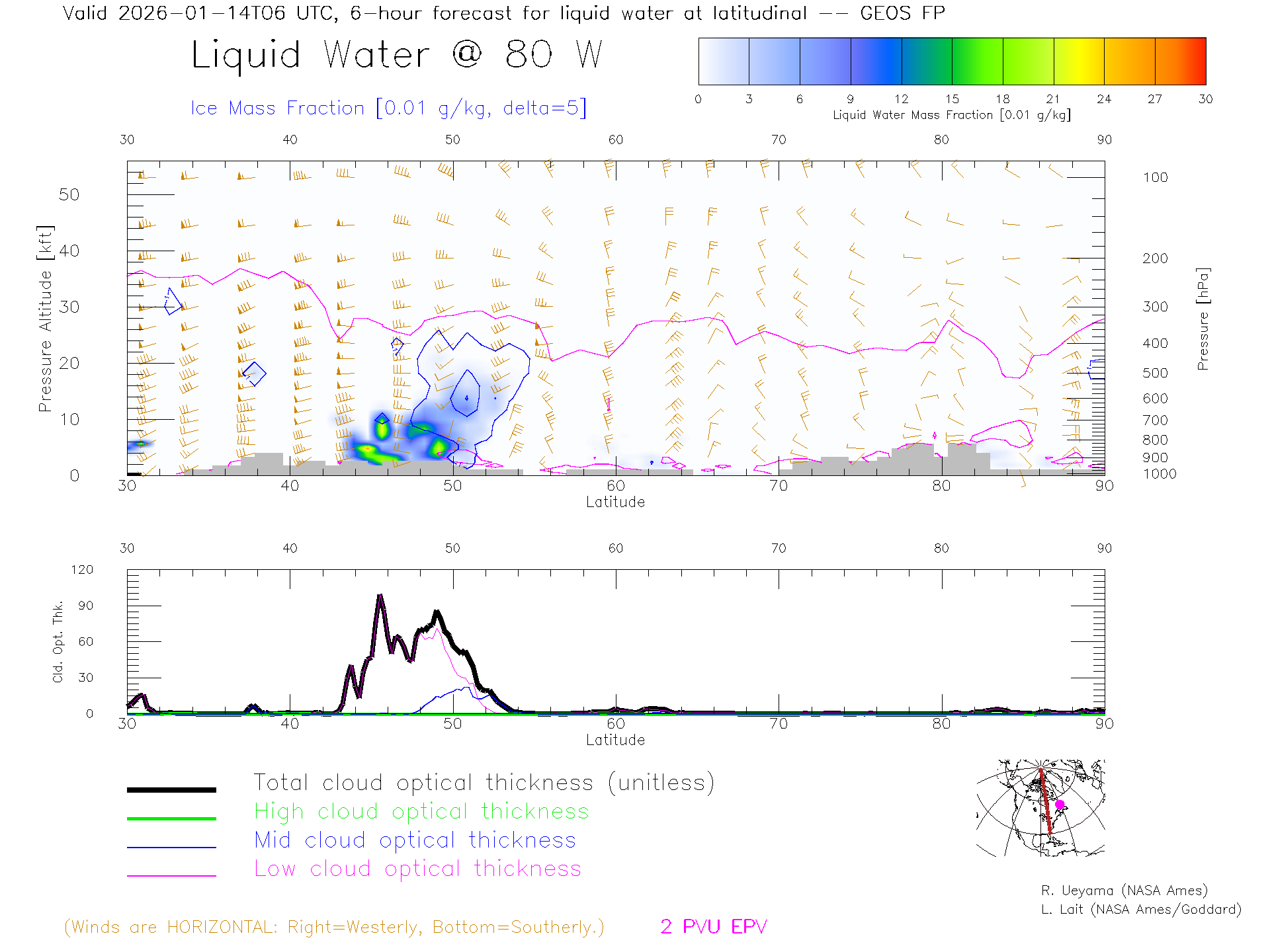 GEOS Forecast Cloud Water Content X-Section (80 W)