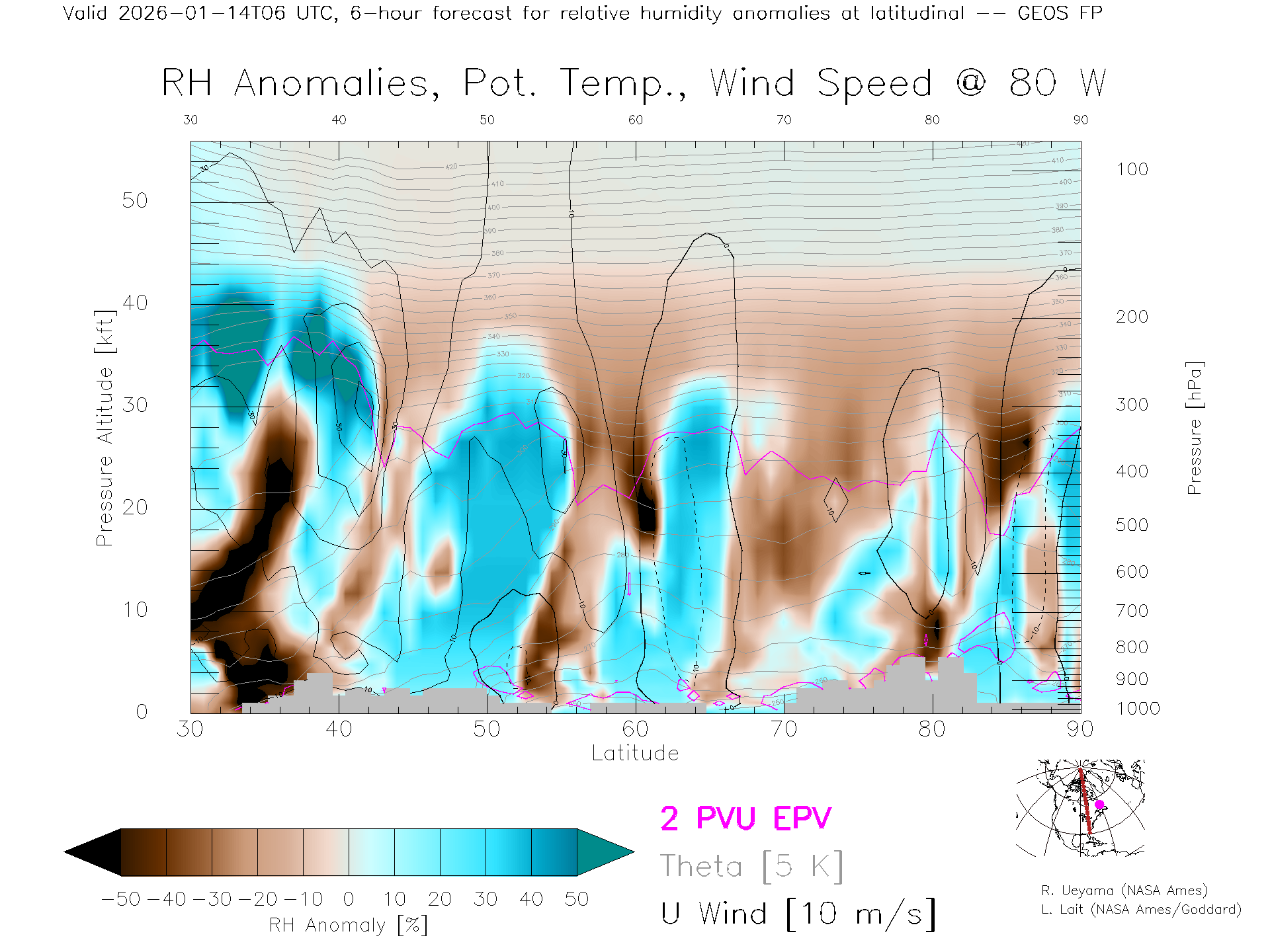 GEOS Forecast Rel. Hum. X-Section (80 W)