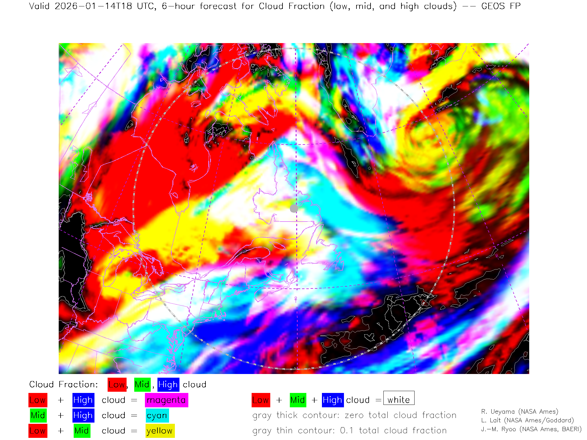 GEOS Forecast Low-, Mid- and High-level Cloud Fraction