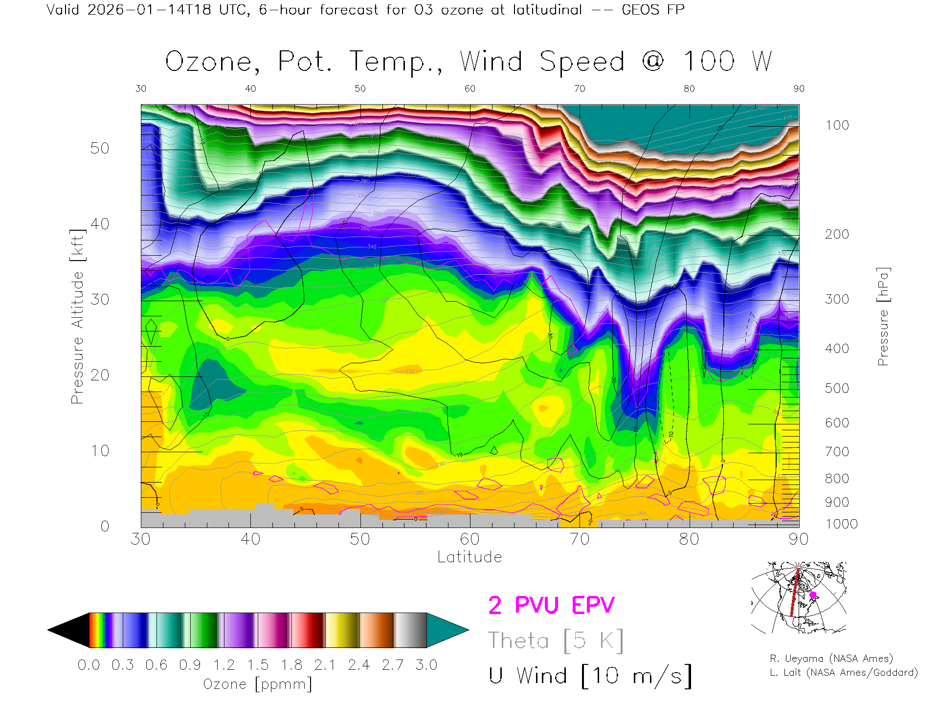 GEOS Forecast Ozone X-Section (100 W)