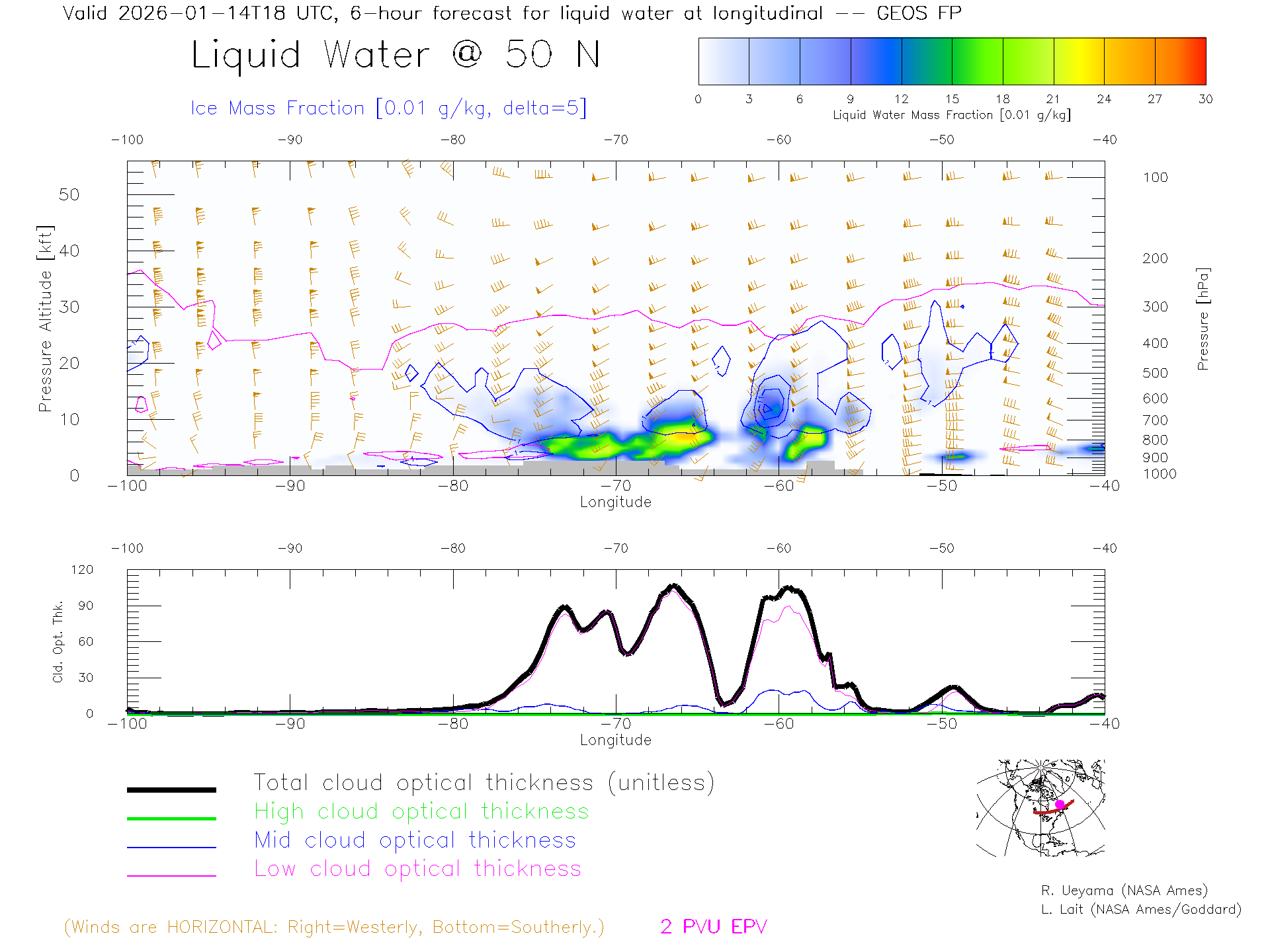 GEOS Forecast Cloud Water Content X-Section (50 N)