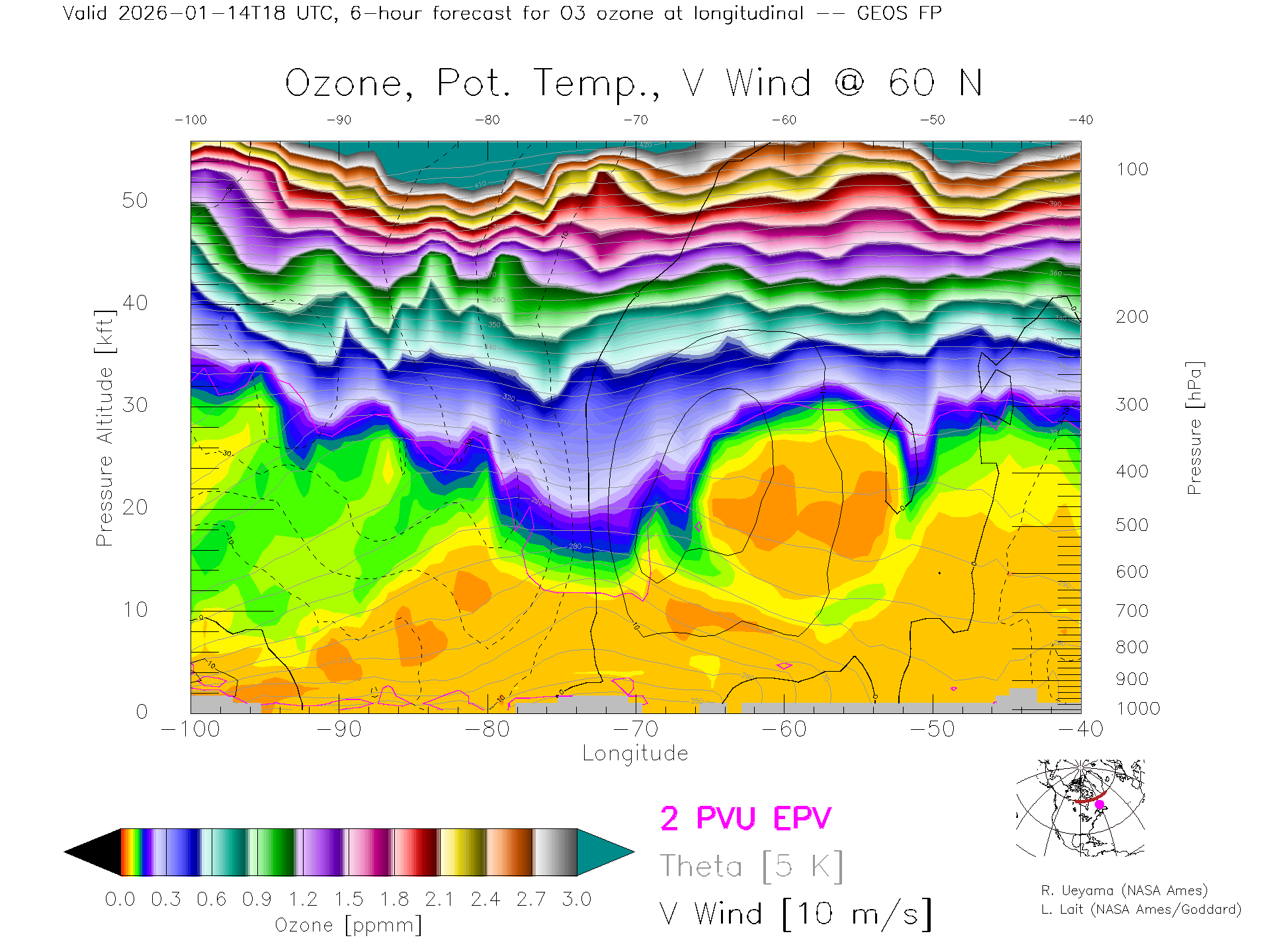 GEOS Forecast Ozone X-Section (60 N)