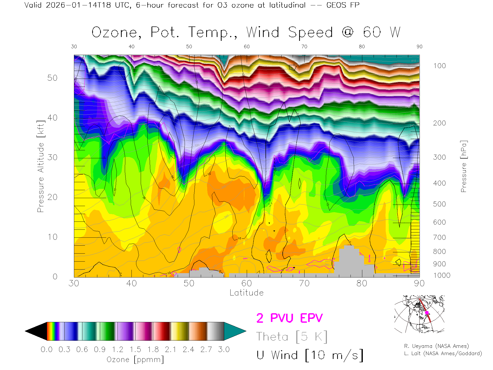 GEOS Forecast Ozone X-Section (60 W)
