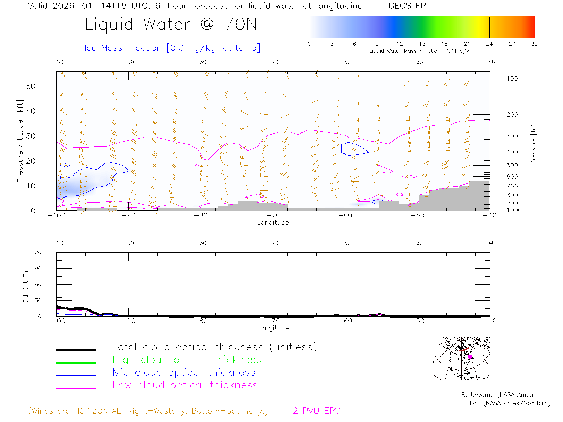 GEOS Forecast Cloud Water Content X-Section (70 N)