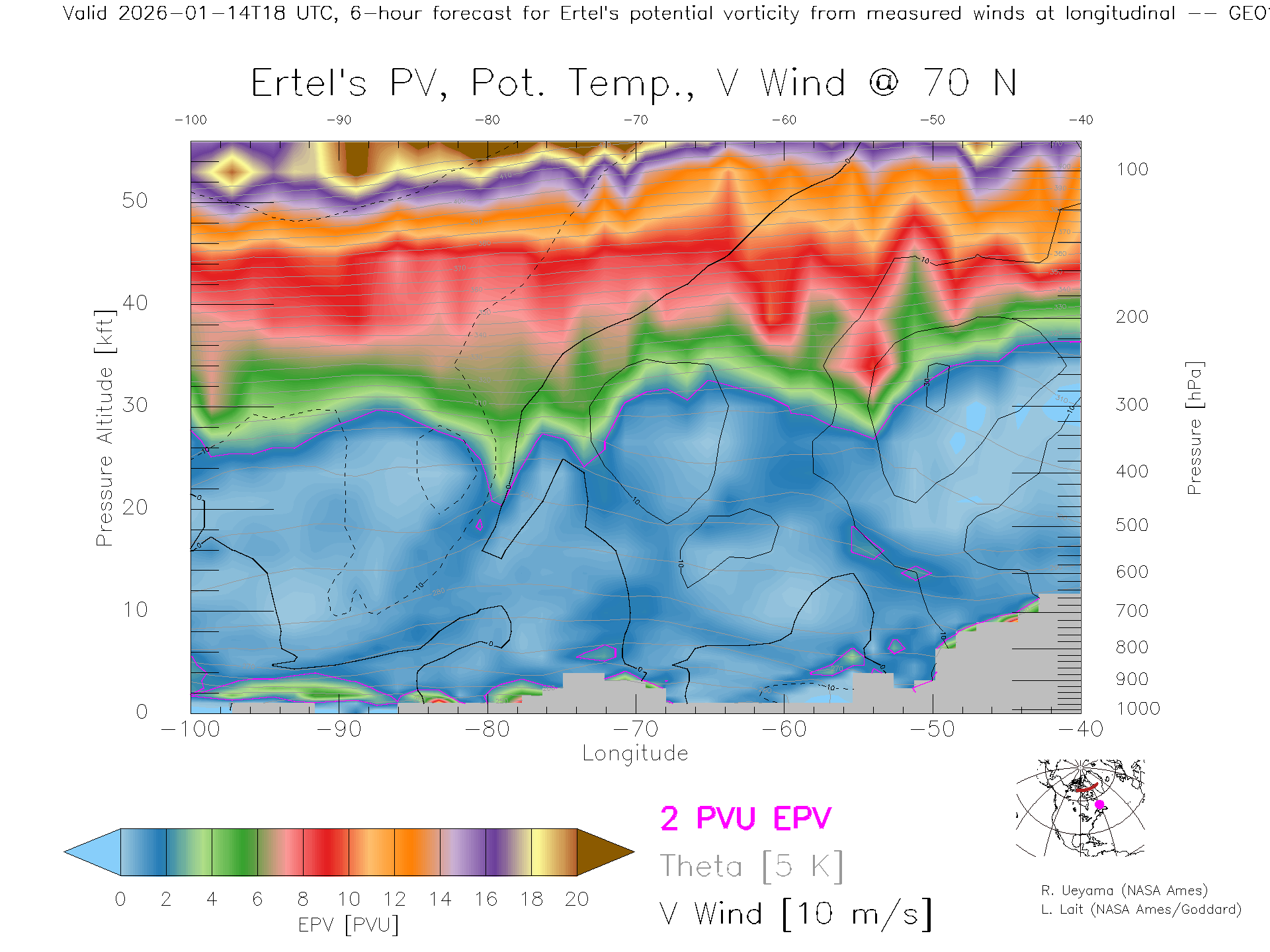 GEOS Forecast PV X-Section (70 N)