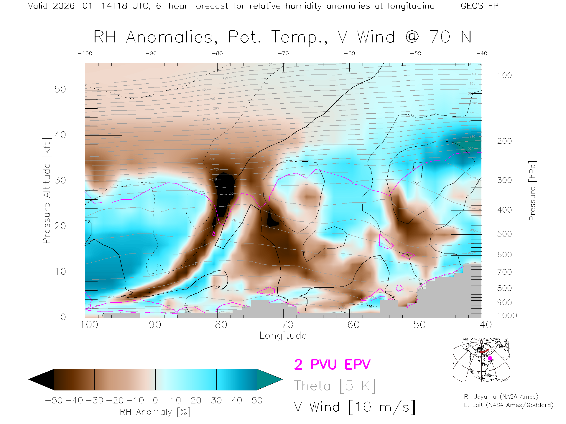 GEOS Forecast Rel. Hum. X-Section (70 N)