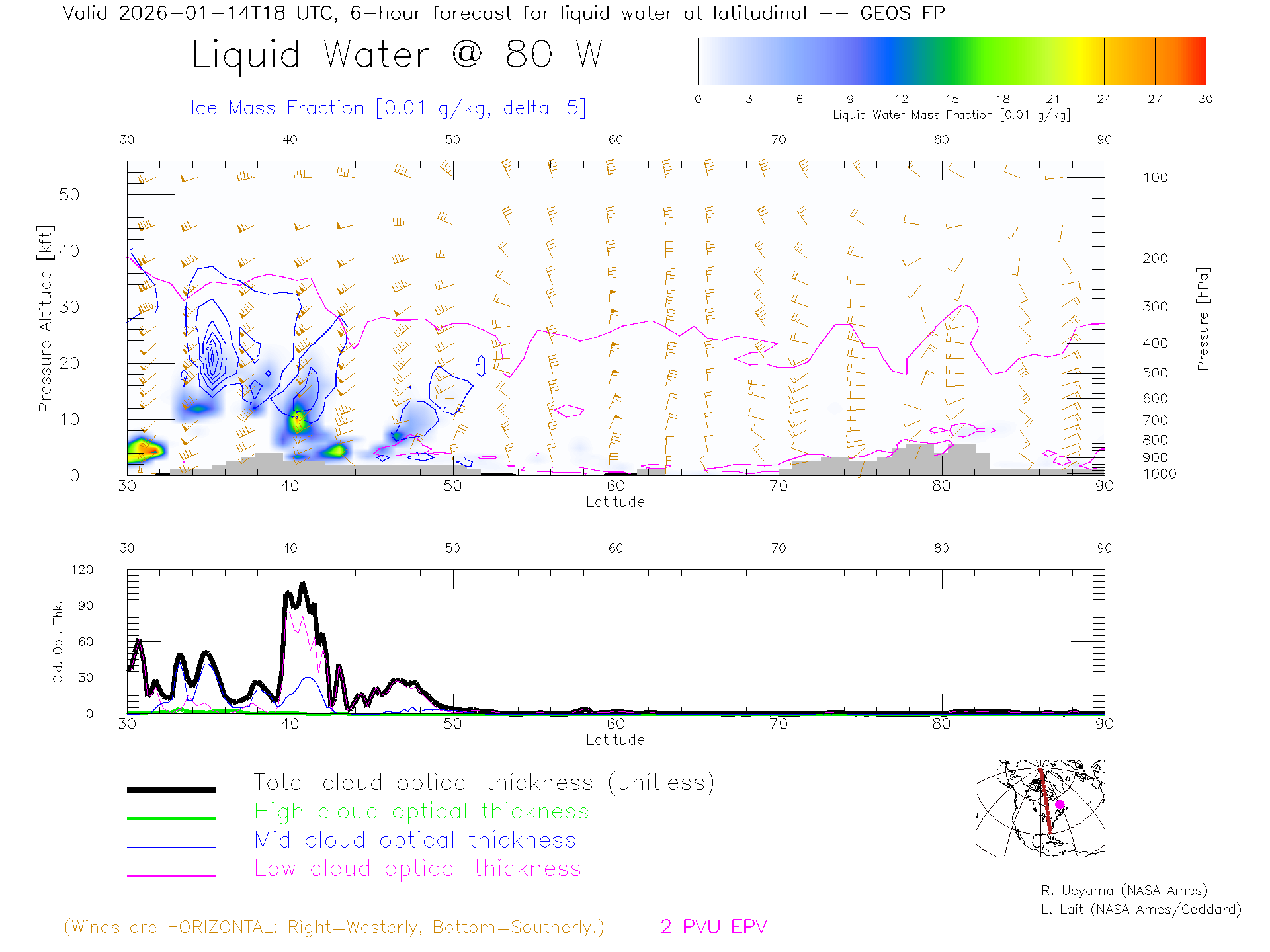 GEOS Forecast Cloud Water Content X-Section (80 W)